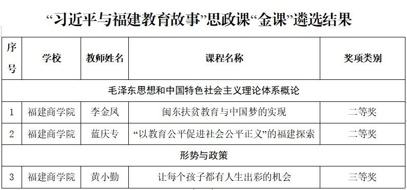 根据《中共福建省教育工委关于公布“习近平与福建教育故事”思政课“金课”遴选结果 暨教学展示活动的通知》(闽委教思〔2023〕14 号)文件精神,贝博官网喜获二等奖2项,三等奖1项,具体如下: