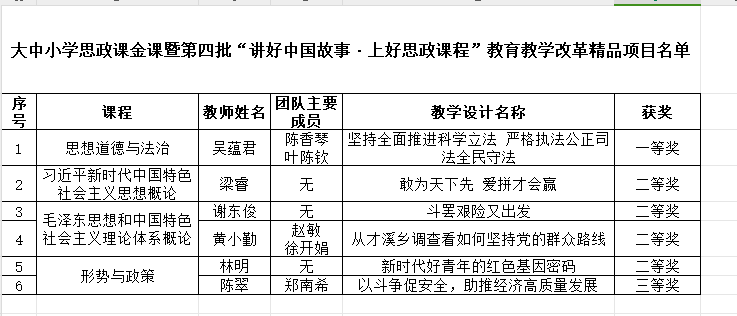 喜讯:近日,贝博官网获得大中小学思政课金课暨第四批“讲好中国故事·上好思政课程”教育教学改革精品项目一等奖一项,二等奖四项,三等奖一项。