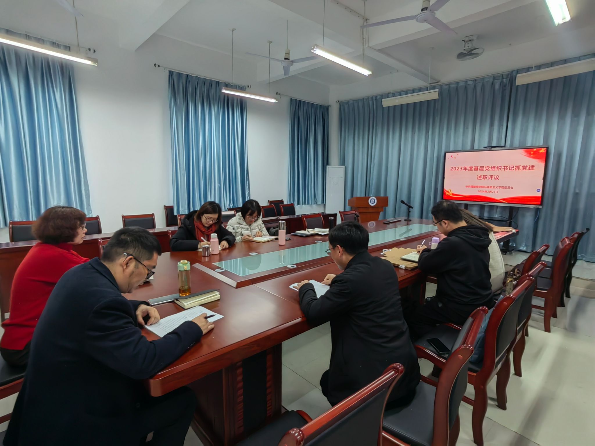 2月27日下午,BB贝博艾弗森官方网站党委在诚信楼五楼会议室召开2023年度党支部书记抓基层党建述职评议会议。学院党委委员、各党支部书记及其支委委员参加会议。会议由院党委书记林萍主持。