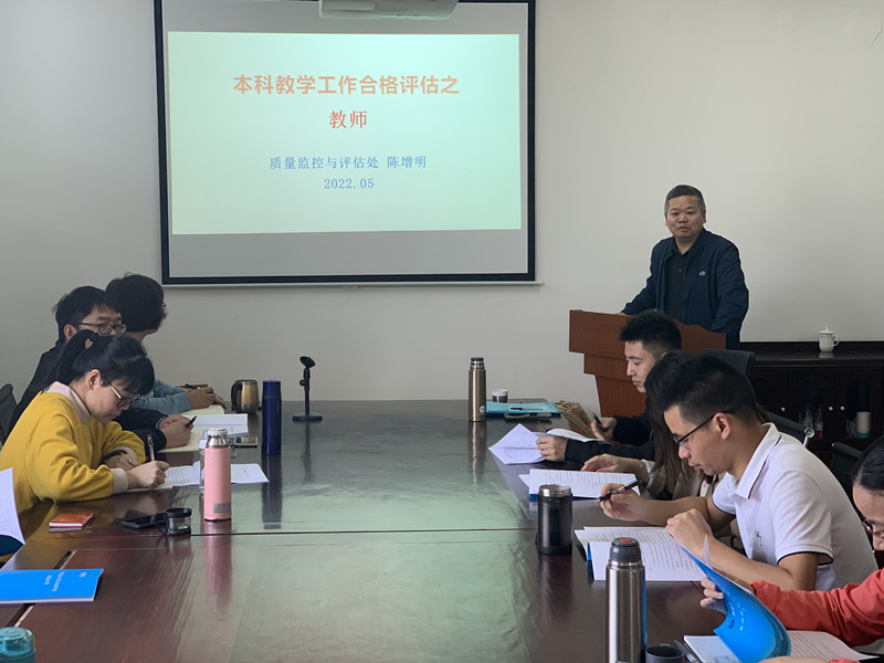为做好本科教学工作合格评估自评自建工作, 5月3日上午校质量监控与评估处陈增明处长到BB贝博艾弗森官方网站开展合格评估专项培训。BB贝博艾弗森官方网站全体教师参加。