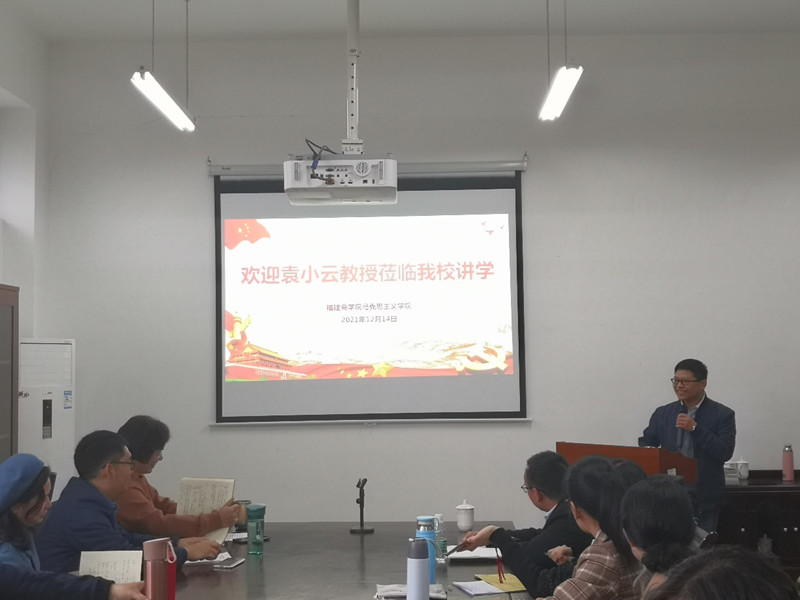 12月14日上午,福建工程学院BB贝博艾弗森官方网站院长袁小云教授应邀来我校作《学科性教学理念与思政课教学改革——聚焦”意识形态”,推动教研相长》专题讲座。校党委副书记吴访益、马克思主义全体教师参加此次讲座。