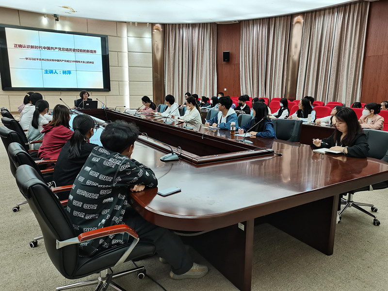10月26日晚,我校2021年青年马克思主义者培养工程培训班在明德楼视频会议室举行“正确认识新时代中国共产党总结历史经验的新境界”专题讲座。本次讲座由BB贝博艾弗森官方网站院长林萍教授主讲,校“青马班”学员、校团委学生干部、校团委老师共60余人参加本次讲座。