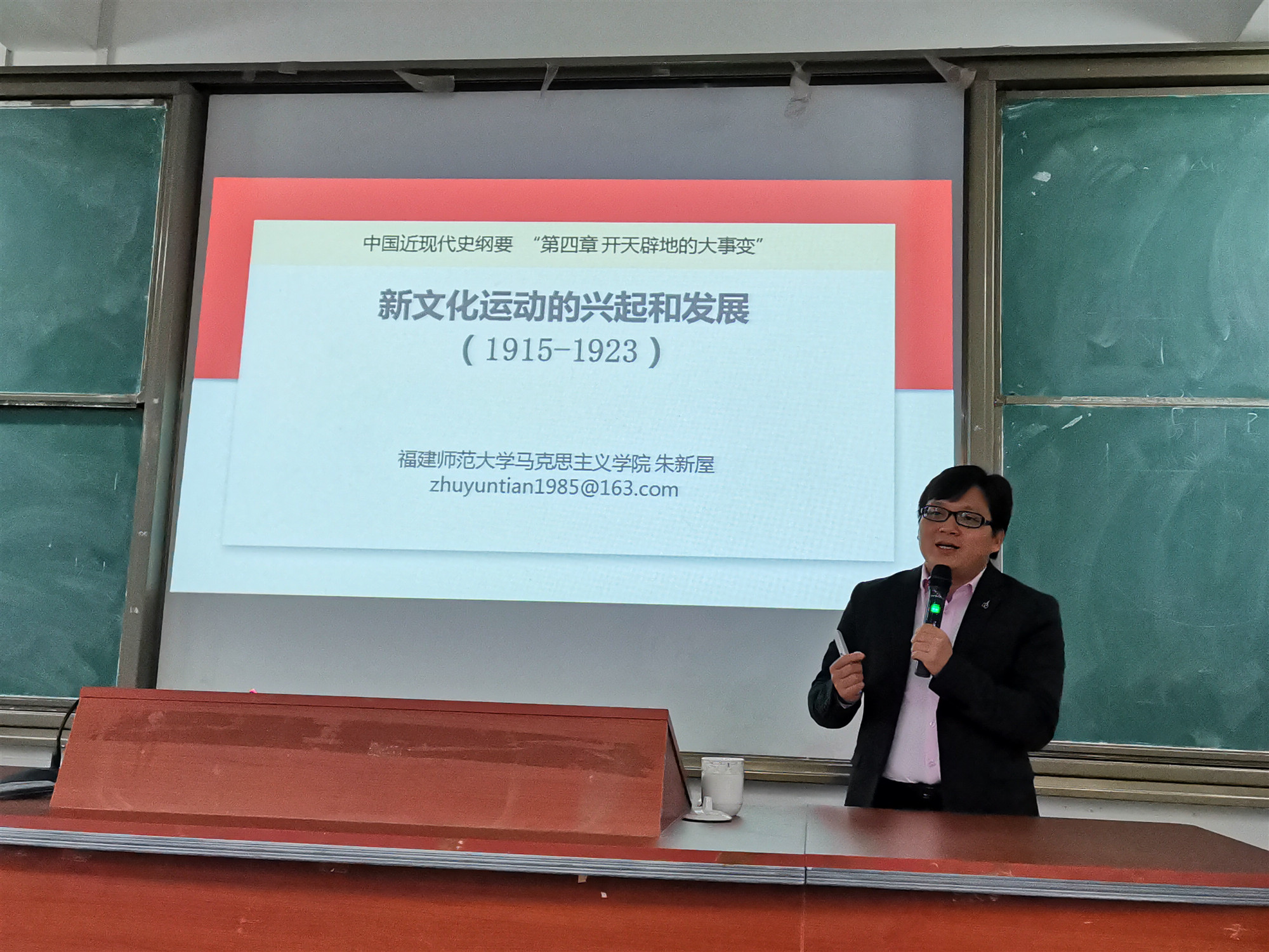 2020年12月14日,福建省高校青年教学名师福建师范大学朱新屋副教授应邀到我校作题为”新文化运动的兴起和发展(1915—1923)”的示范教学。BB贝博艾弗森官方网站部分教师以及2020级数据科学与大数据技术1、2班学生参加学习。