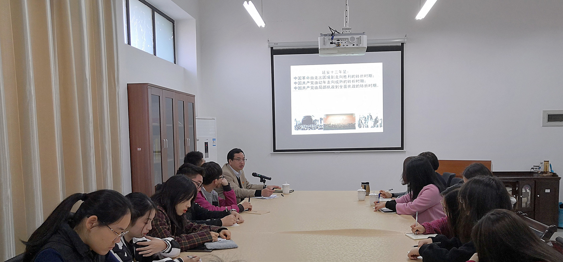 1月2日上午,副校长蒲文庆在BB贝博艾弗森官方网站会议室给财务与会计学院习近平新时代中国特色社会主义思想读书社学生上了一堂题为《中国革命成功的延安之路——中共中央延安十三年》的思政课。财务与会计学院、BB贝博艾弗森官方网站部分老师以及读书社成员参加了此次学习。