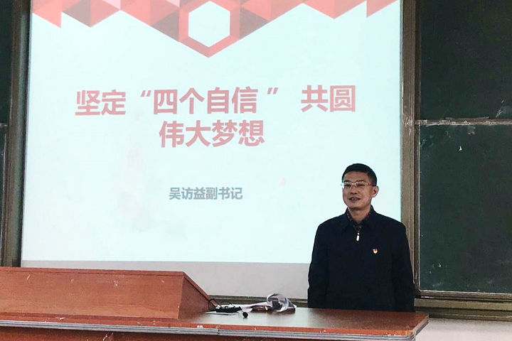 12月6日,校党委副书记吴访益在连江校区诚信楼中阶2给学生上了一堂题为《坚定“四个自信” 共圆伟大梦想》的党课。BB贝博艾弗森官方网站部分教师党员、部分学生入党积极分子和2018级会计1、2班学生共一百多人参加学习。