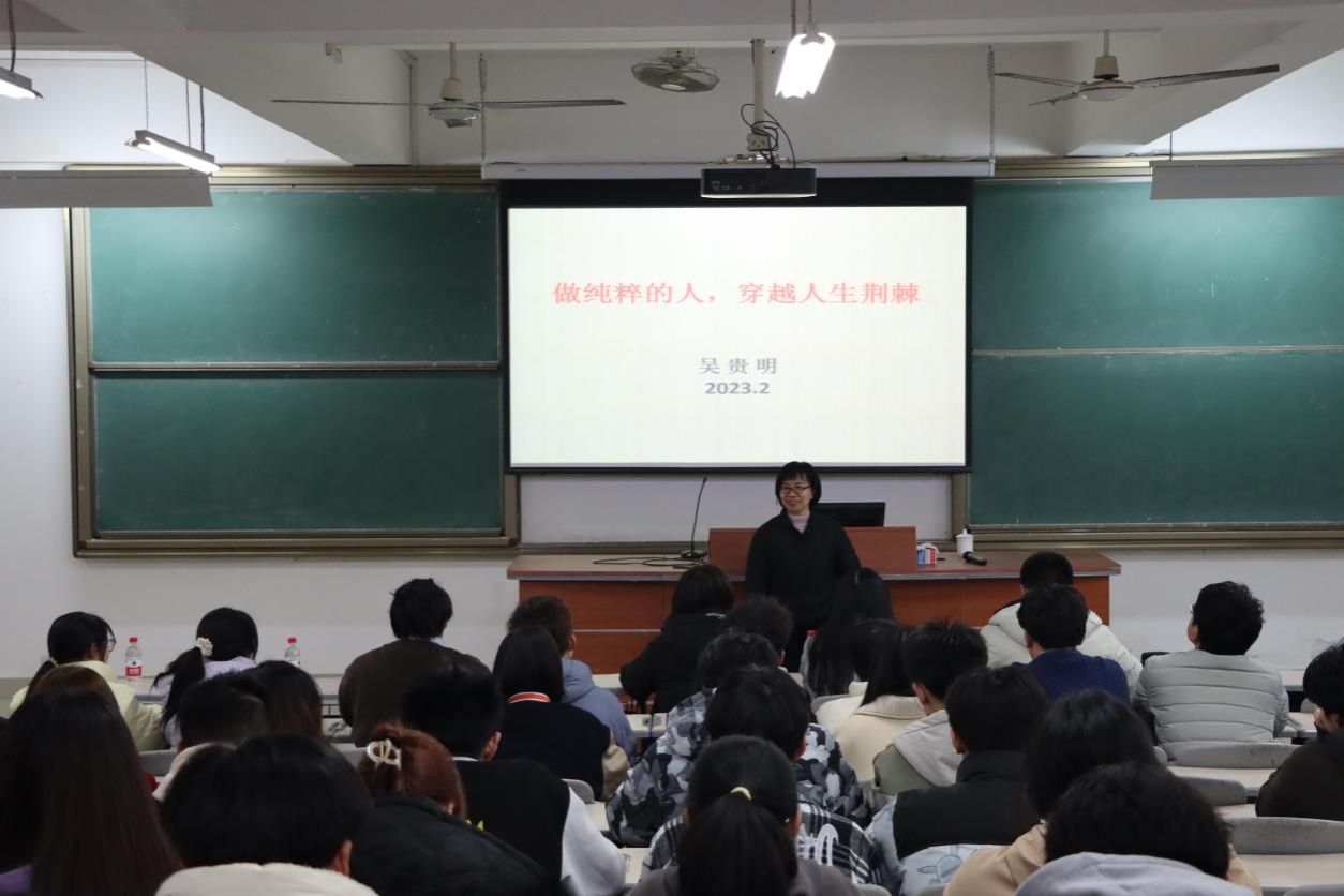2月22日晚上,福建省委党校吴贵明教授应邀到我校作“做纯粹的人,穿越人生荆棘”专题讲座。BB贝博艾弗森官方网站部分教师、校习近平新时代中国特色社会主义思想读书社社员等共120多人参加学习。