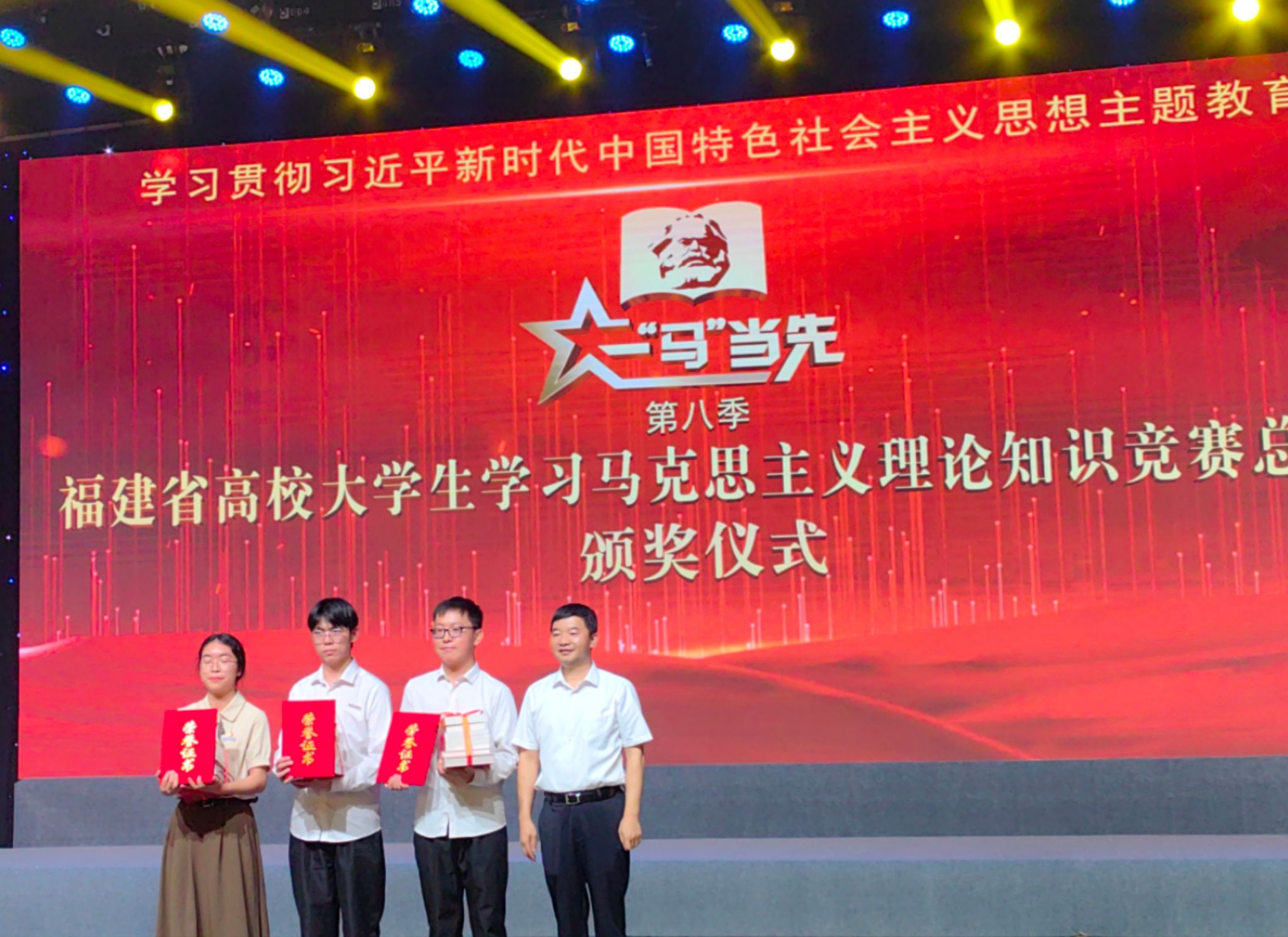 8月15日,由中共福建省委教育工委主办的第八季福建省高校大学生学习马克思主义理论“一‘马’当先”知识竞赛总决赛落下帷幕,我校参赛学生在比赛中喜获佳绩。省委常委、宣传部部长张彦,省委教育工委书记、省教育厅厅长叶燊莅临总决赛现场并为获奖选手颁奖。副校长蒲文庆参加活动。
