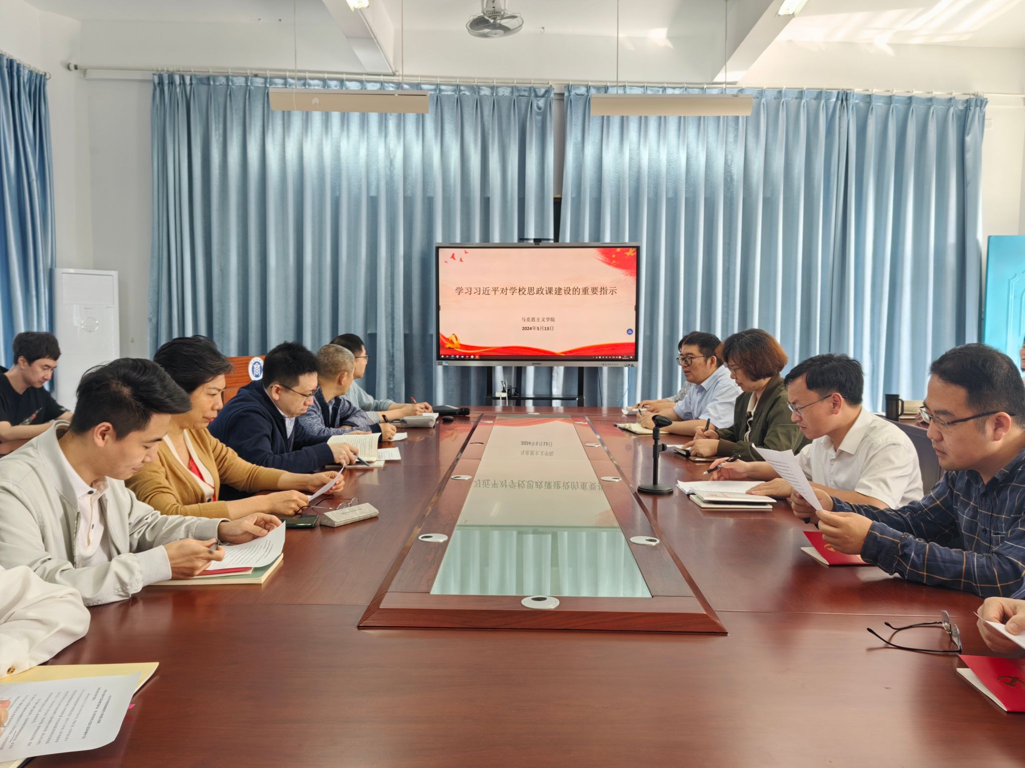 习近平总书记对学校思政课建设作出重要指示,在贝博官网教师及读书社学生中引起热烈反响。5月13日,学院召开学习会议,围绕如何推进新形势下思政课建设展开思考。学院全体教师及读书社部分学生参加。