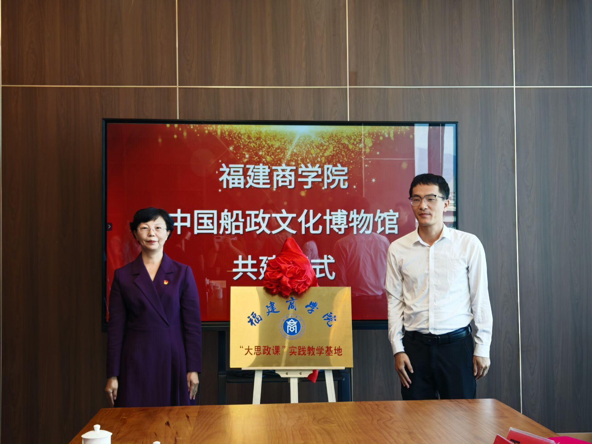 10月29日,我校与中国船政文化博物馆举行“大思政课”实践教学基地签约暨揭牌仪式。副校长林文艺、福建船政文化管理委员会副主任杨明新、福建船政文化管理委员会场馆管理处副处长王日强、中国船政文化博物馆馆长王芳、BB贝博艾弗森官方网站党政班子、工商管理学院党委班子及教师与学生代表30余人参加。仪式由馆长王芳主持。