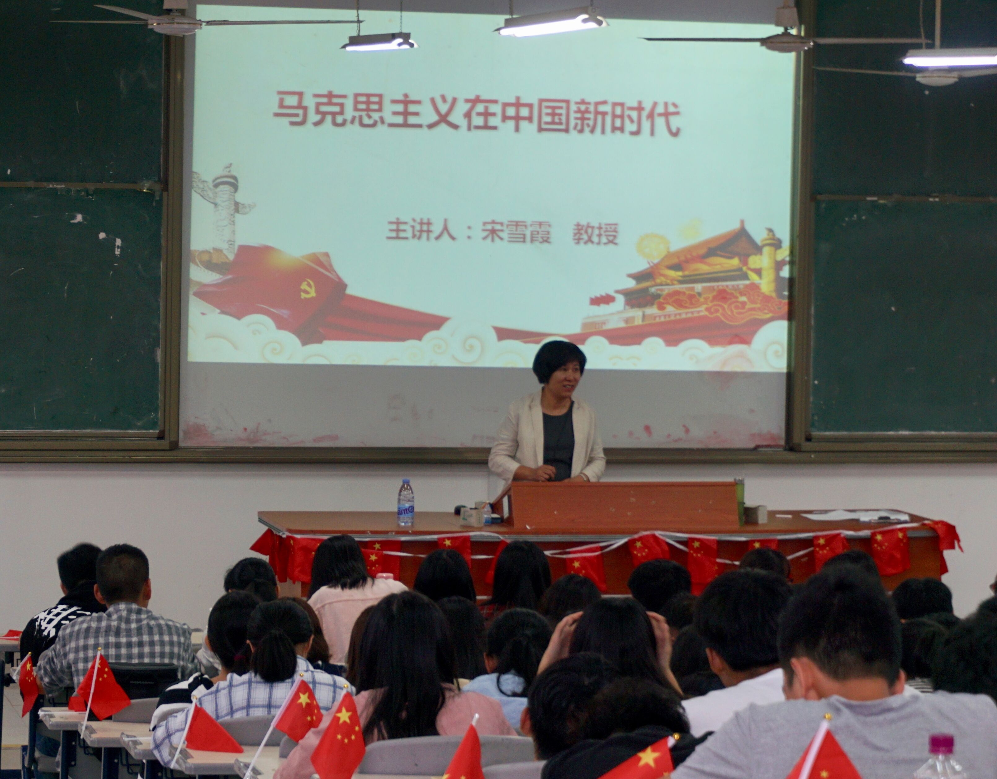 开班仪式结束后,福建工程学院BB贝博艾弗森官方网站宋雪霞教授为在场师生作了题为《马克思主义在中国新时代》的首场专题讲座。宋教授系统全面的介绍了马克思的平生、马克思信仰形成的四个阶段、继而引导同学们思考“到底什么是马克思主义?”她用拆分法告诉大家:“马克思主义中的‘马克思’为其创始人,‘主义’是核心的价值追求,把马克思所倡导的造福人民,为绝大多数人谋福利作为核心价值追求,就是马克思主义”。此外,宋教授深入浅出的剖析了当代中国的伟大社会变革,不是简单延续我国历史文化的母版,不是简单套用马克思主义经典作家设想的模板,不是其他国家社会主义实践的再版,也不是国外现代化发展的翻版。