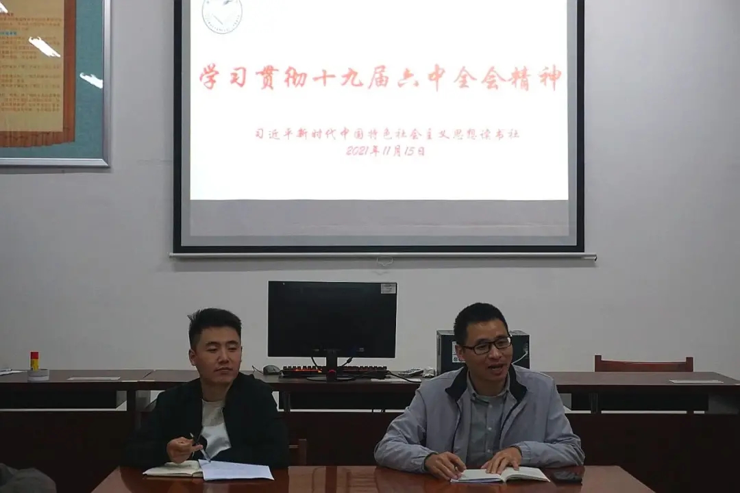 为进一步学习贯彻党的十九届六中全会精神,深入学习党的百年奋斗成就和历史经验,校习近平新时代中国特色社会主义思想读书社于2021年11月15日晚在连江校区自强楼114活动室开展十九届六中全会精神学习、交流活动。BB贝博艾弗森官方网站赵敏老师、林甦垚老师、叶陈钦老师及读书社部分社员参加学习。活动中,师生热议十九届六中全会精神。