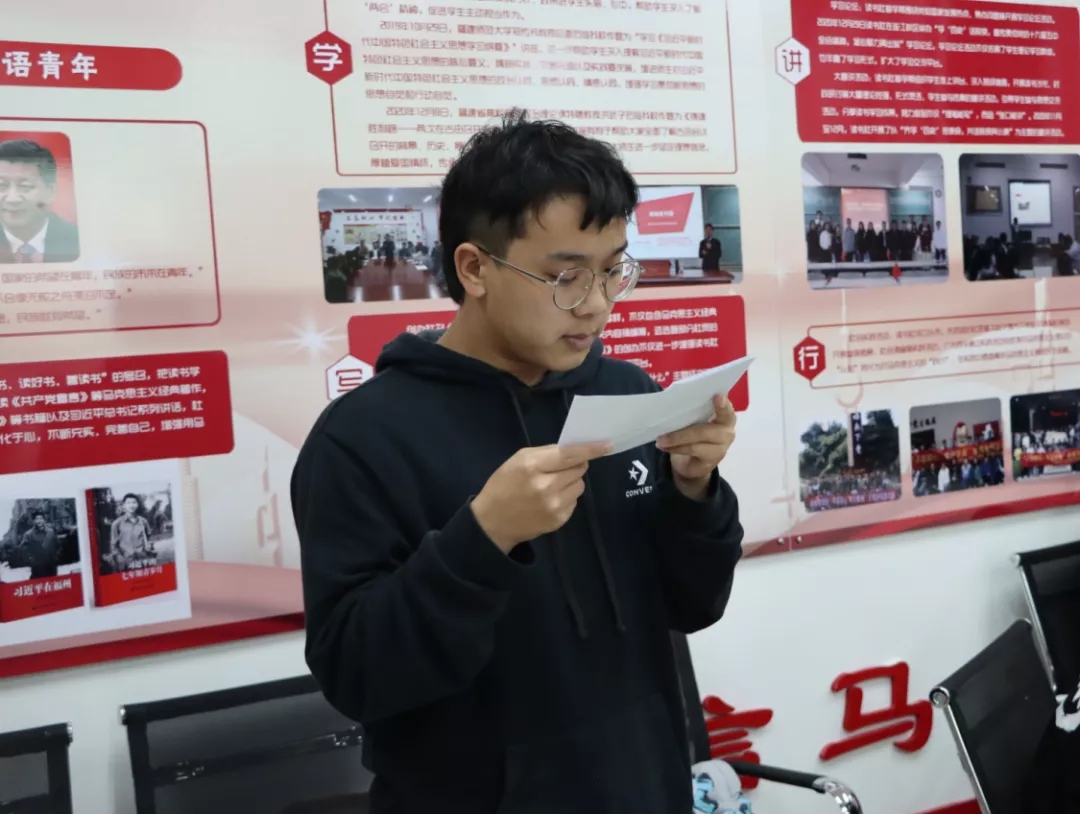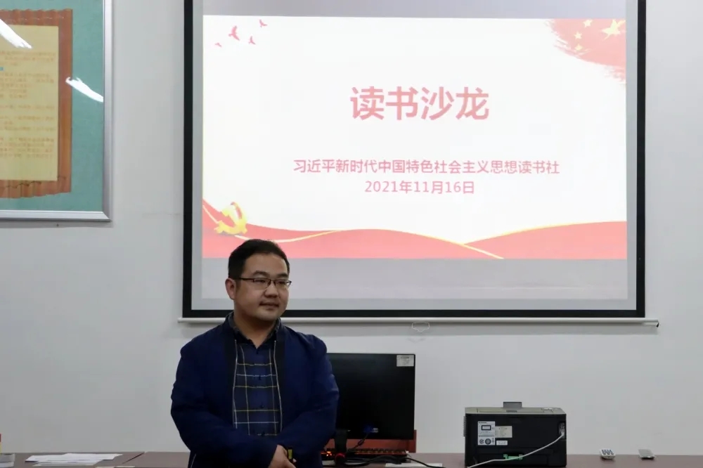 为进一步深入学习中国共产党百年奋斗重大成就和历史经验,深刻感受中国共产党人在中华民族伟大复兴征程中体现出的爱国情怀、高尚品格和精神风骨,汲取奋进力量,校习近平新时代中国特色社会主义思想读书社于2021年11月16日晚在连江校区自强楼114活动室开展读书沙龙活动。BB贝博艾弗森官方网站陈阳老师、叶陈钦老师以及读书社第五小组全体社员共40多人参加此次活动。活动由叶陈钦老师主持。