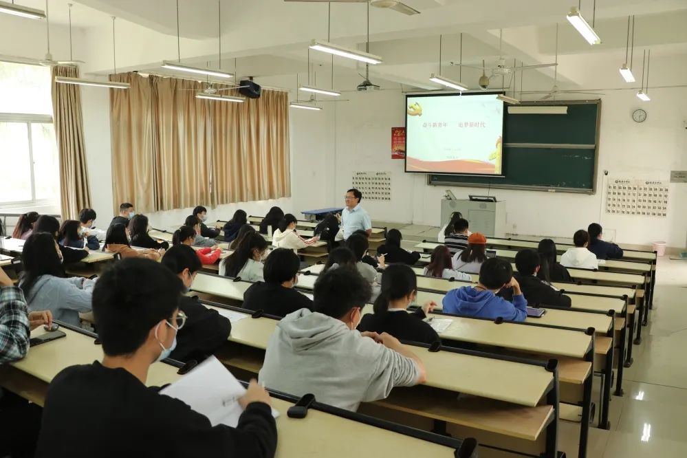 为进一步学习贯彻党的十九届六中全会精神,深刻领悟党百年奋斗的宝贵经验,坚定青年学生对中国化马克思主义理论的信仰,深化对中国共产党执政规律的认识,使新时代青年学生看清楚过去为什么能够成功、弄明白未来怎样才能成功,2022年4月19日下午,BB贝博艾弗森官方网站谢东俊副教授在马尾校区允能楼T1教室开展“奋斗新青年,追梦新时代”专题讲座。校马列经典著作读书社指导教师、读书社社员、马尾校区青马班学员参与学习。