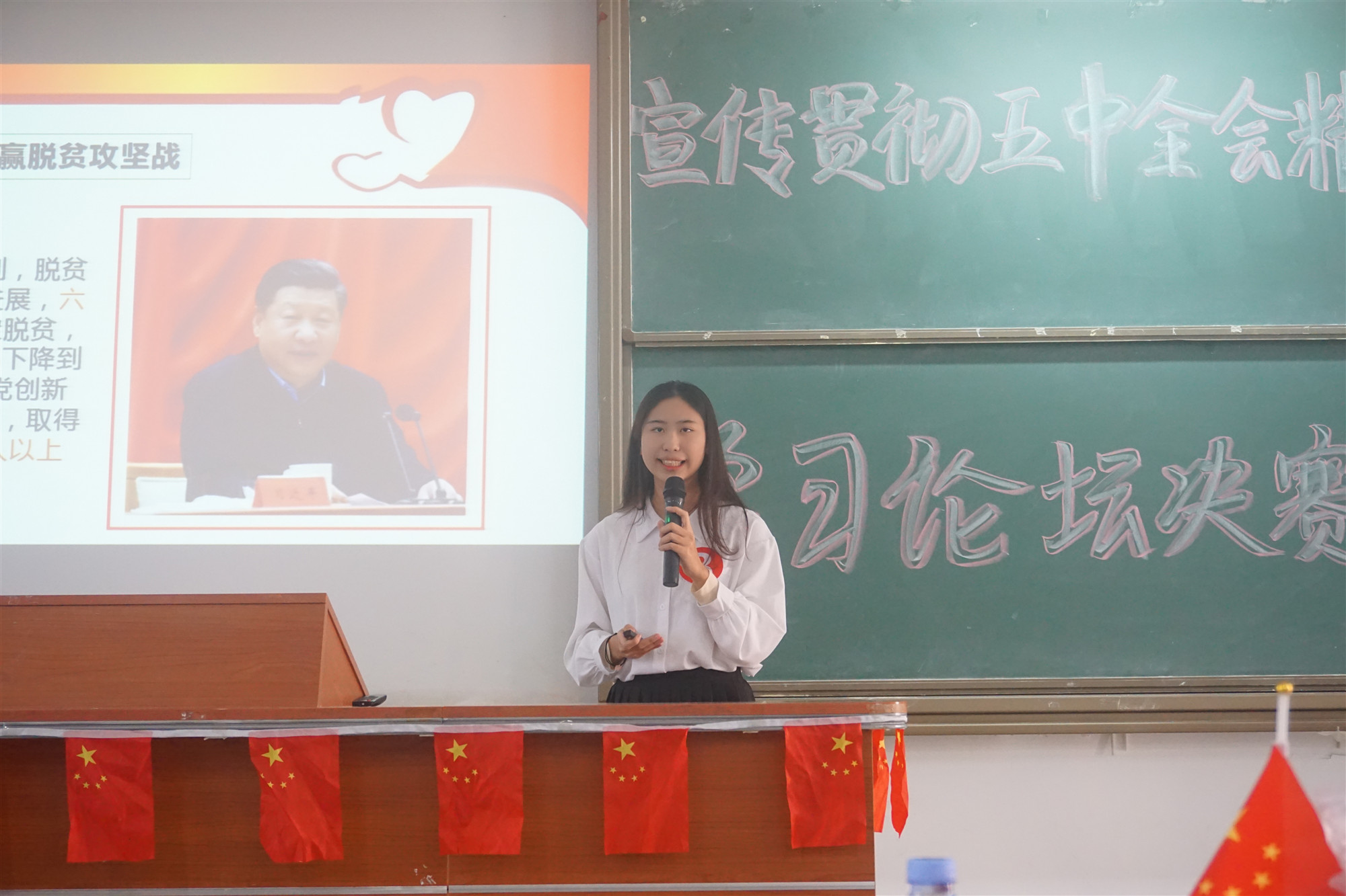 近日,校习近平新时代中国特色社会主义思想读书社在连江校区举办“学‘四史’话脱贫 宣传贯彻党的十九届五中全会精神 凝心聚力再出发”学习论坛决赛,校党委副书记吴访益、BB贝博艾弗森官方网站部分教师以及读书社社员共100多人参加此次活动。