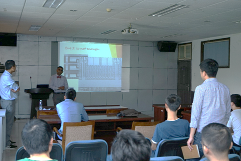Choubey教授首先在机电学院第一会议室为万象城师生做了题为“When one is not enough: Large number of microsystems on a chip”以及“When things start bending: Nonlinearity in MEMS”的学术报告,吸引了来自不同学院的40多名师生参与其中。
