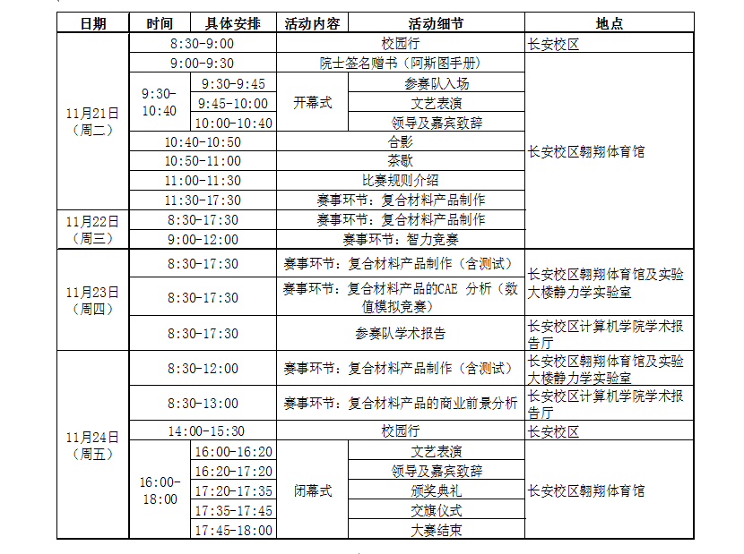 第二届复合材料世界杯赛(Composite Battle World Cup,Xi’an 2017)将于2017年11月20日至11月24日在万象城娱乐awc线路长安校区举办。主办方是“一带一路”航天创新联盟(常设秘书处单位是万象城娱乐awc线路)和中俄工科大学联盟(万象城娱乐awc线路是今年的中方轮值主席单位)。承办方是万象城娱乐awc线路。