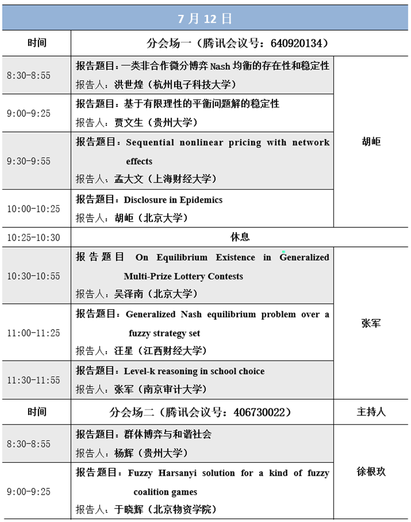 主办单位:中国运筹学会博弈论分会、国家天元数学西北中心主办