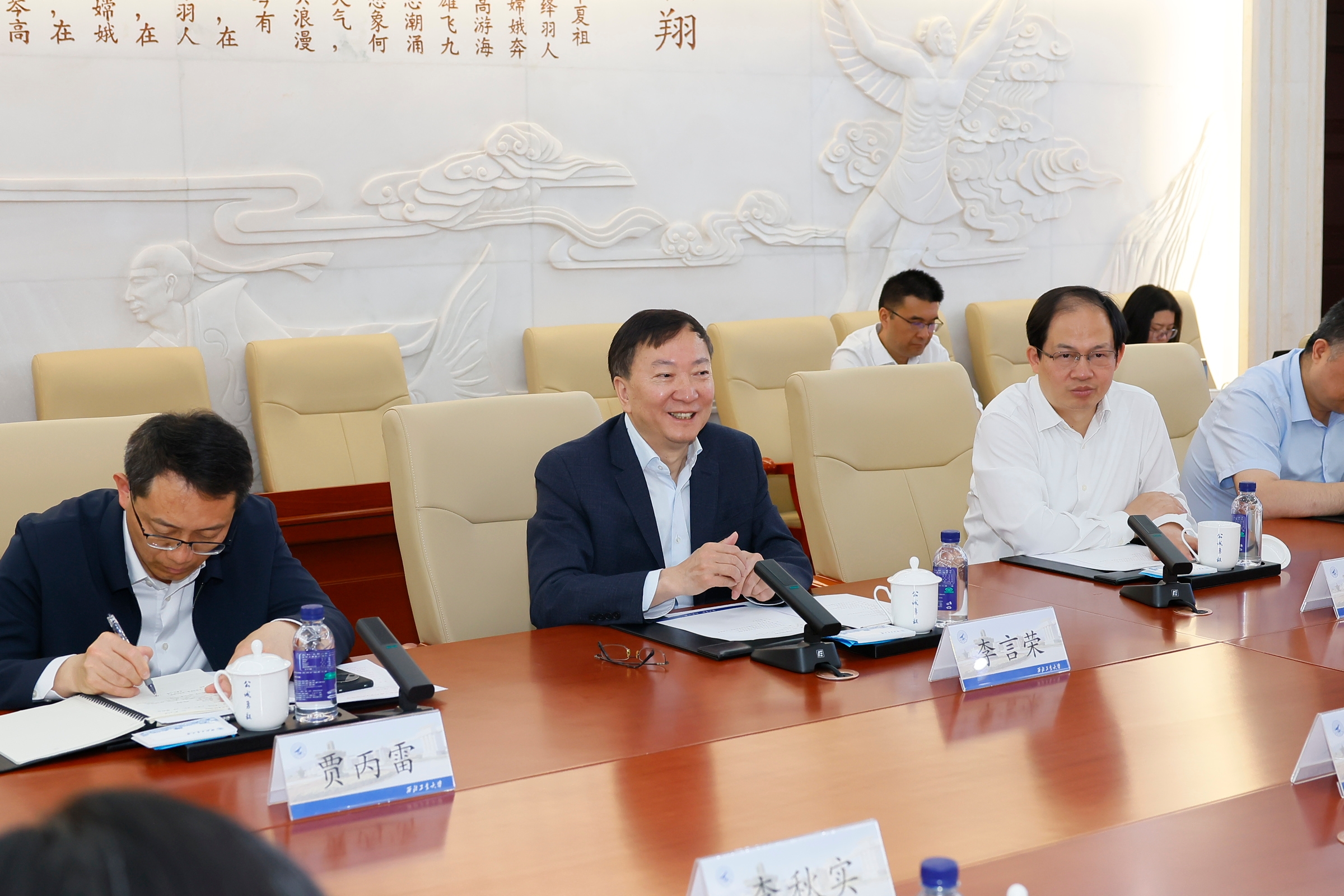 李言荣对靳敏、李秋实一行表示欢迎。他说,西华大学是一所非常好的学校,历史悠久,特色鲜明,近些年学校发展充满生机与活力。西工大与西华大学都是行业特色高校,希望两校加强沟通交流,相互学习,共同推动两校高质量内涵式发展。