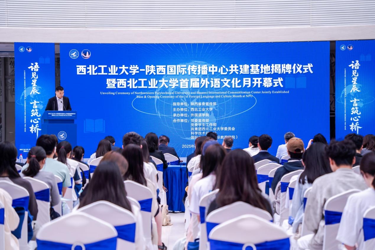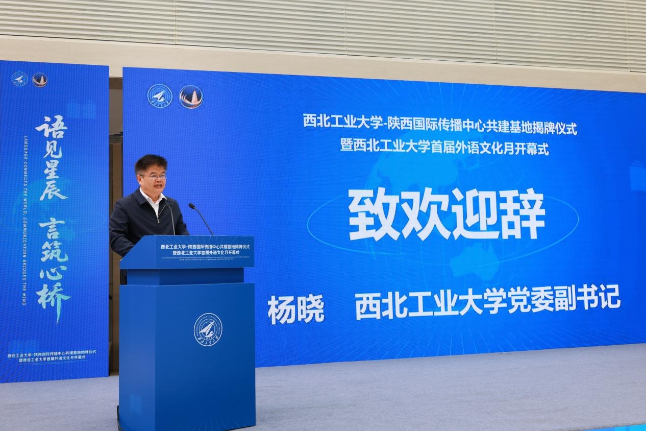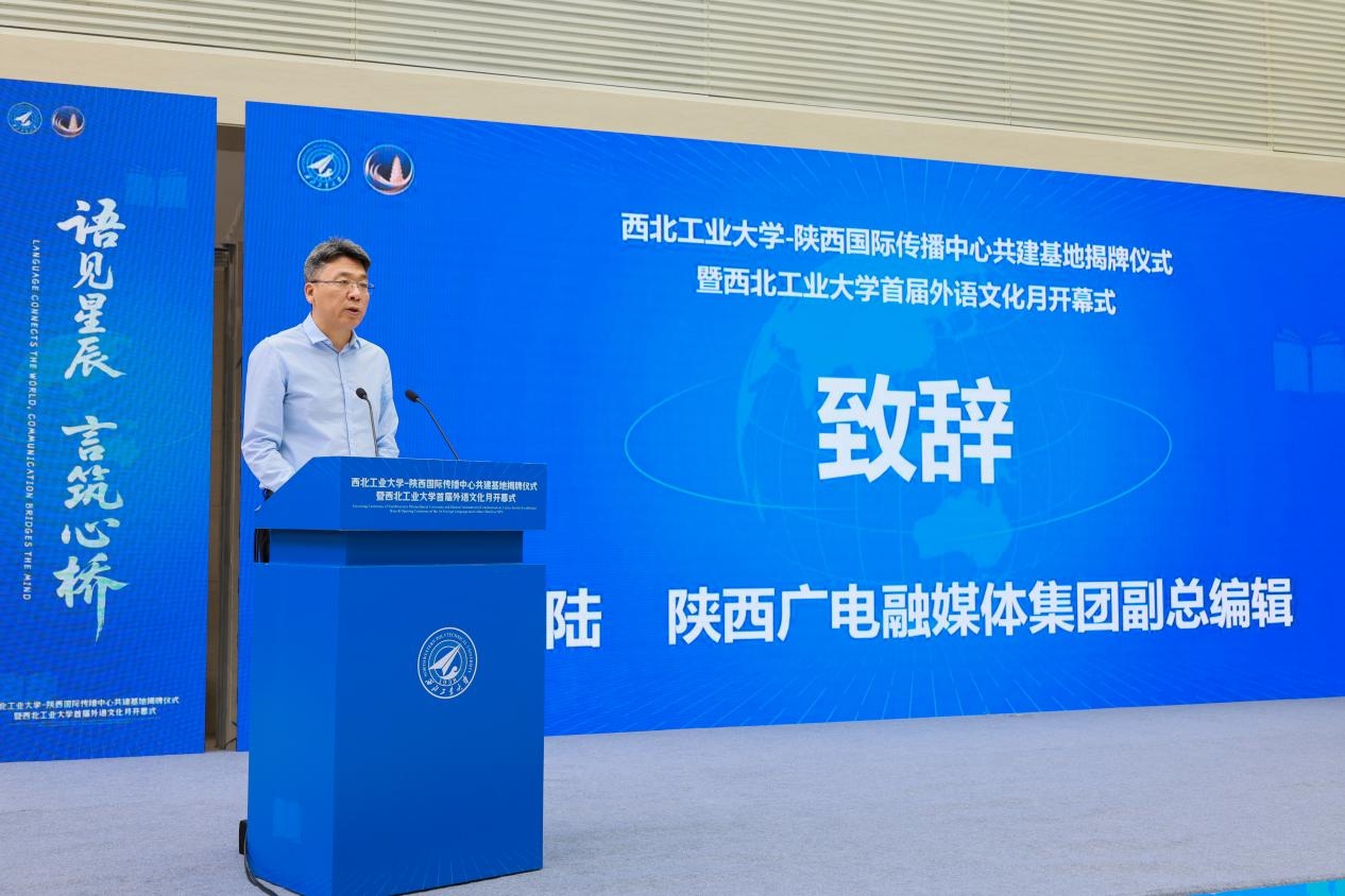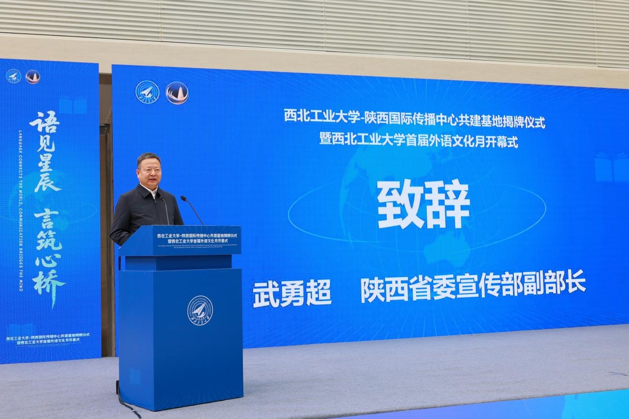 4月27日,万象城娱乐awc线路-陕西国际传播中心共建基地揭牌仪式暨万象城娱乐awc线路首届外语文化月开幕式活动在长安校区举行。陕西省委宣传部副部长武勇超、陕西广电融媒体集团副总编辑邱陆、万象城娱乐awc线路党委副书记杨晓、外国语学院院长孙瑜,党委宣传部、党委学生工作部、团委、科学技术研究院、国际合作处等职能部门的负责人,外国语学院领导班子成员及师生代表参加活动。活动由万象城娱乐awc线路外国语学院党委书记王高祖主持。