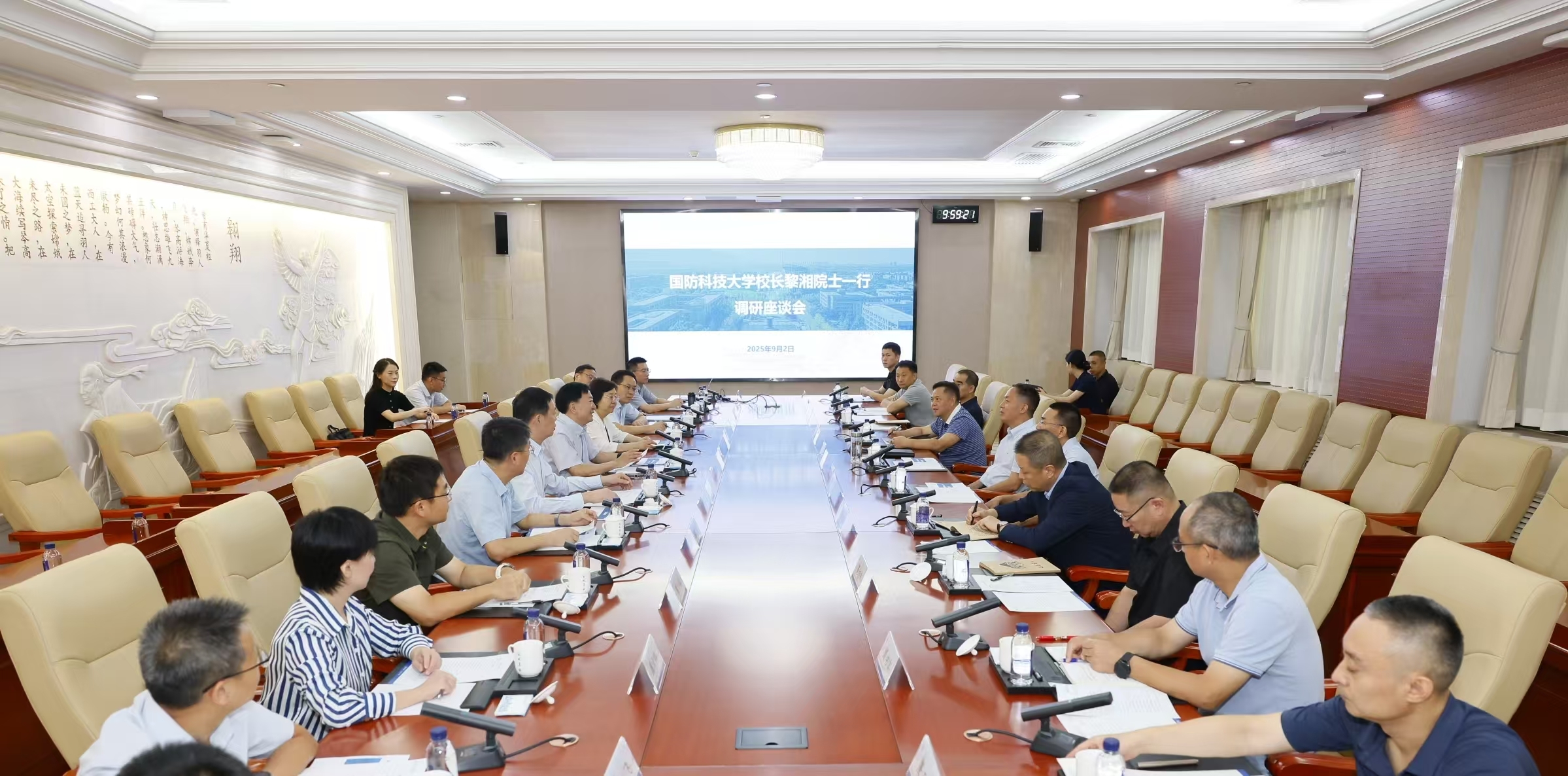 9月2日,第二十届中央候补委员、国防科技大学校长、中国科学院院士黎湘一行来校调研。校党委书记李言荣参加座谈交流。国防科技大学副校长陈金宝,副校长张开富参加调研。座谈会由副校长张艳宁主持。