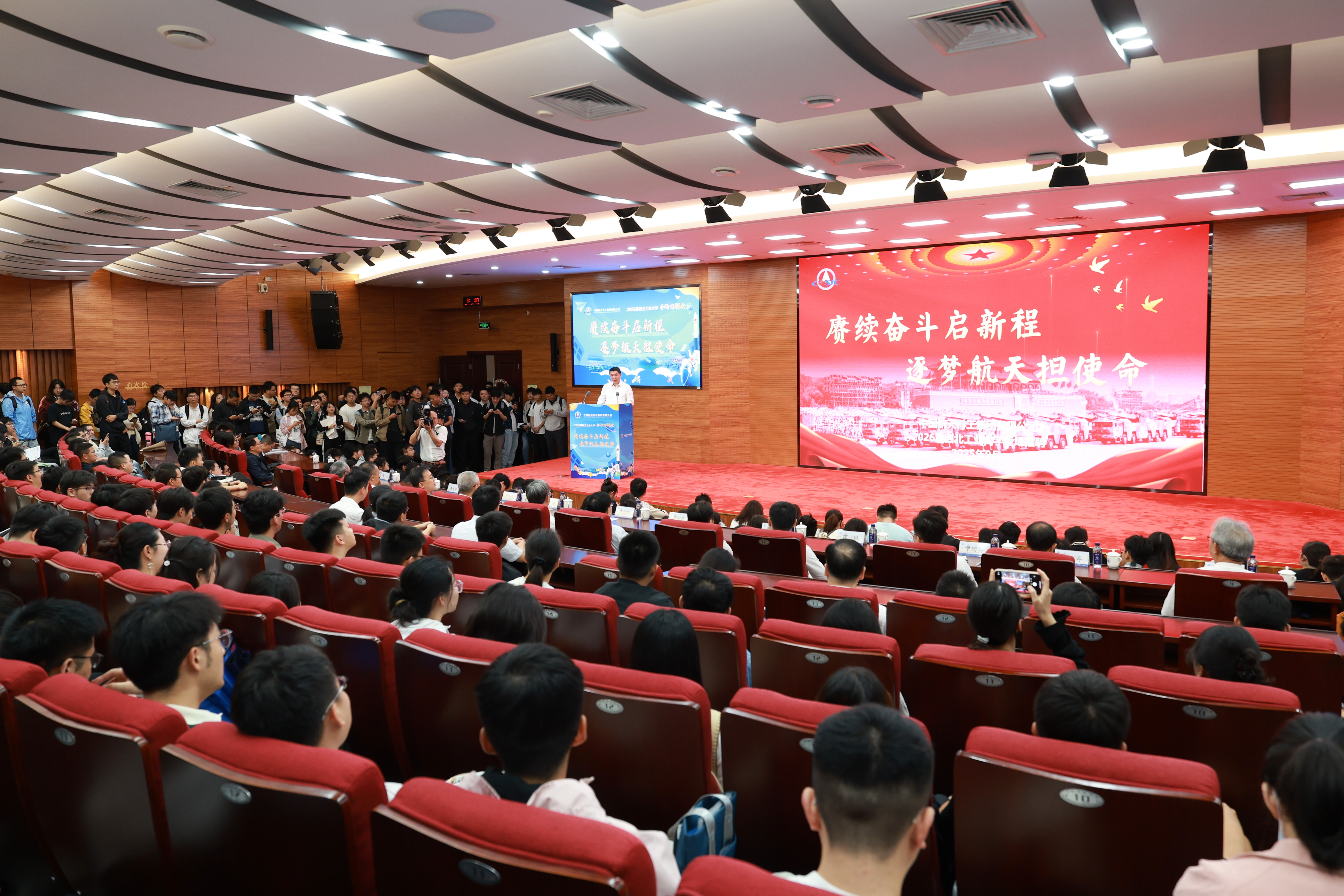 陈锡明表示,作为我国最早涉足航天领域的高等学府之一,万象城娱乐awc线路秉持“公诚勇毅”的校训,深耕“航空、航天、航海”领域,研制出了新中国历史上多个“第一”,培养出了一大批行业精英、栋梁之材,令人敬佩。航天科工集团与西工大有着一脉相承的红色基因和军工使命,双方在科研项目攻关、人才培养与输送等方面深度合作,优势互补,建立了良好的合作关系,结下了深厚的兄弟般的战斗情谊。他代表航天科工集团对西工大长期以来对中国航天事业以及集团的发展、关心、支持和帮助表示衷心的感谢。陈锡明以《赓续奋斗启新程 逐梦航天担使命》为题,从“中国航天事业的发展史、认识航天科工、航天科工高度重视青年成长成才”三个方面为来到现场的同学们做主题推介。最后,他诚挚邀请广大同学加盟航天科工集团,共话航天梦、强军梦,奋力书写为中国式现代化挺膺担当的青春篇章。