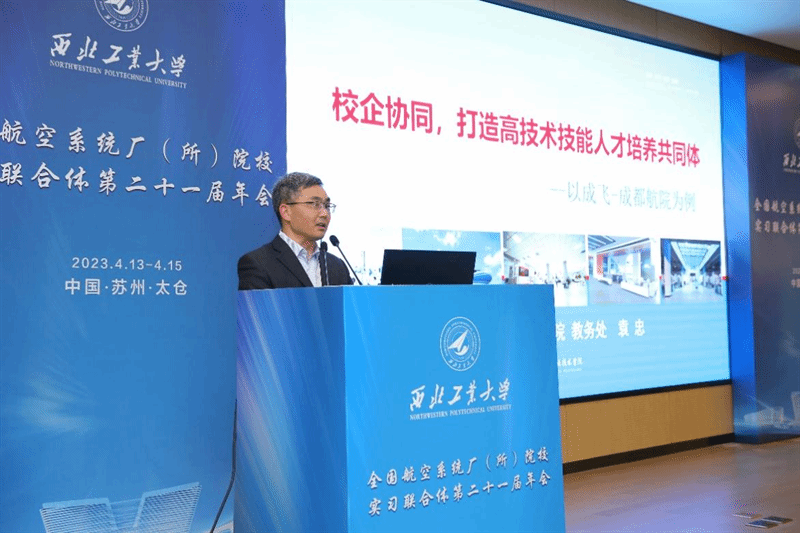 成都航空职业技术学院教务处处长袁忠在题为“校企协同,打造高技术技能人才培养共同体”的报告中,详细介绍了学校在课程建设、实习实训建设、专业教学团队建设、校企科研攻关、学生就业、学生培养技术服务与培训等方面的做法与经验。