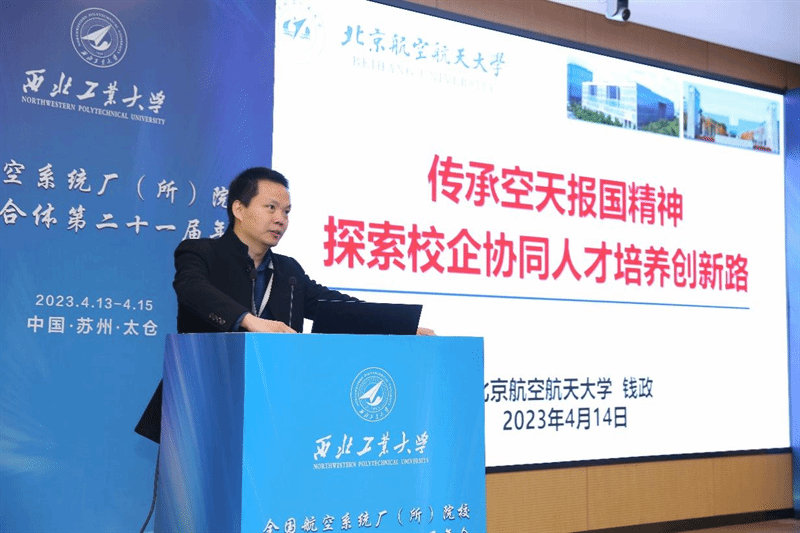 北京航空航天大学教务部部长钱政在题为“传承空天报国精神 探索校企协同人才培养创新路”的报告中指出,打造新时代北航人才培养“四强”模式:厚植情怀引导学生立志空天报国、强化基础筑牢学生学识培养基础、突出实践促进知行合一全面发展、科教融通融合创新创造人才培养,培养服务国家需求和引领时代发展的未来领军领导人才。