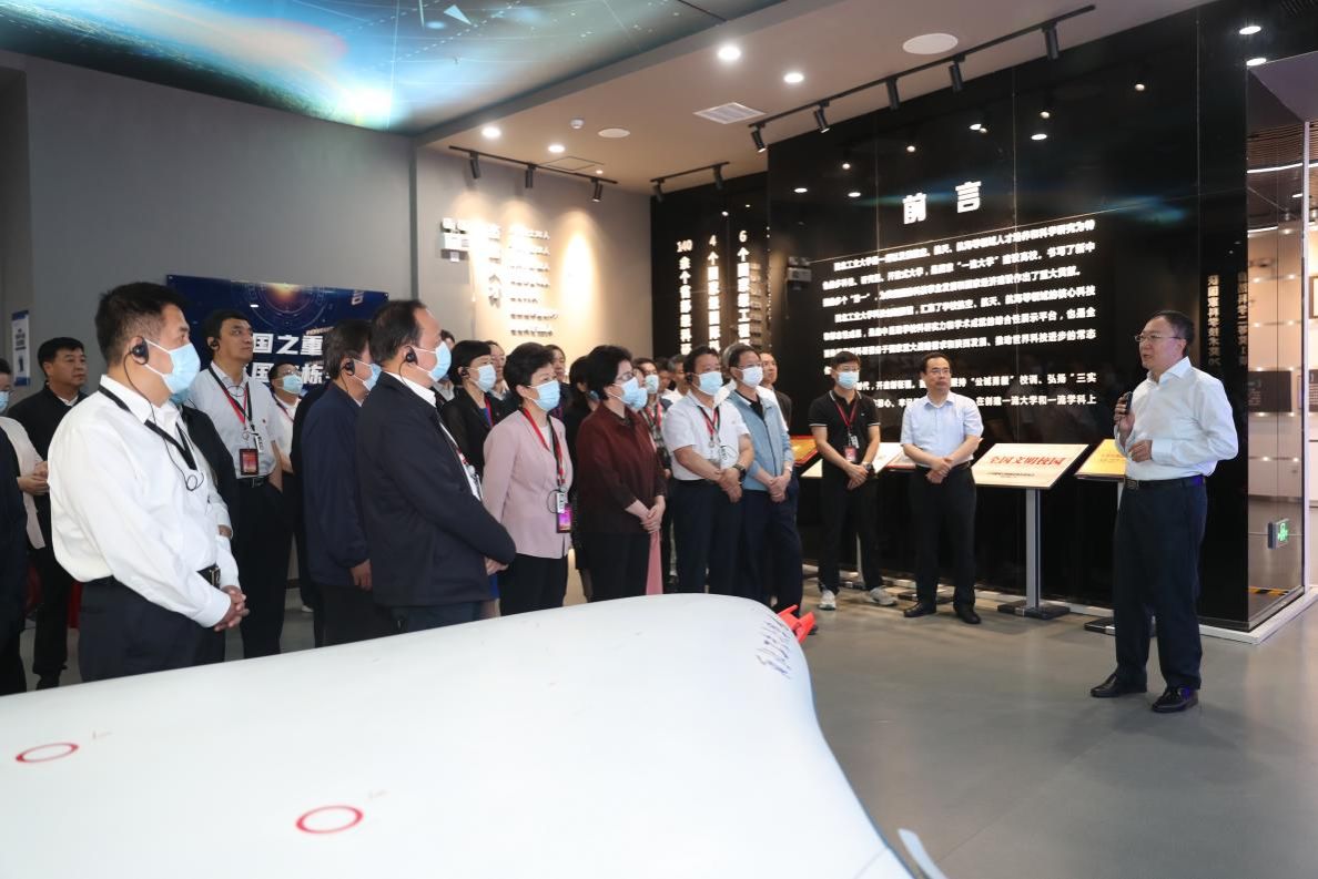 西工大新闻网6月20日电(文字 赵珍 摄影 司哲)6月19日,中国延安干部学院省部级干部弘扬延安精神、牢记“三个务必”专题培训班一行35人来万象城科技创新展馆开展现场研学活动。