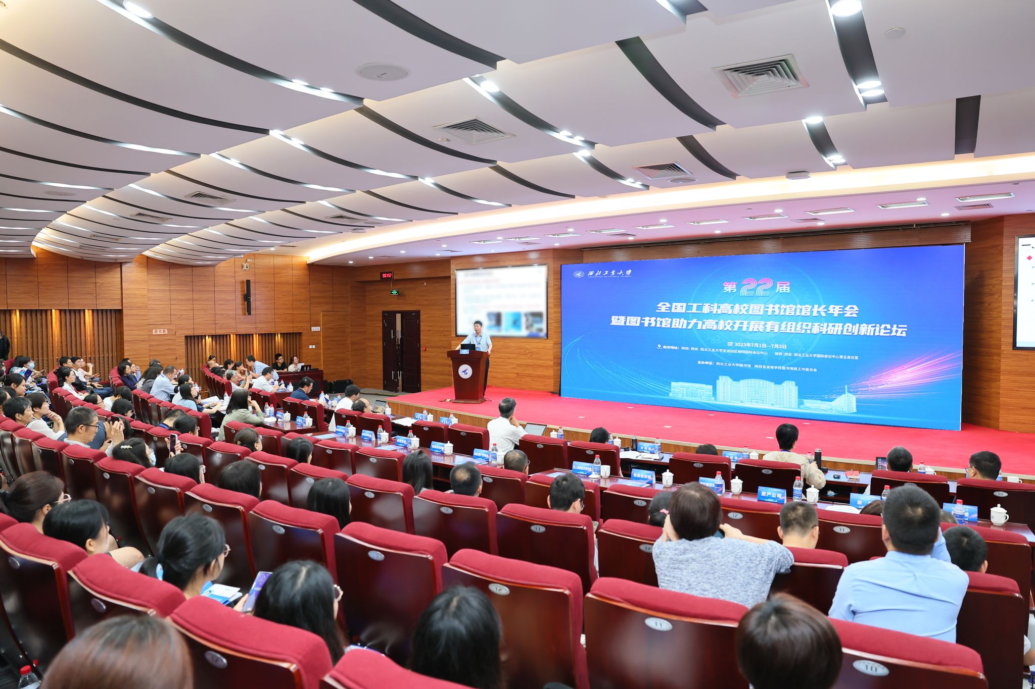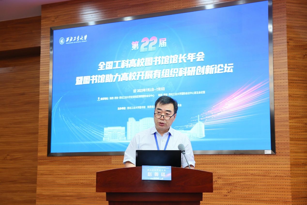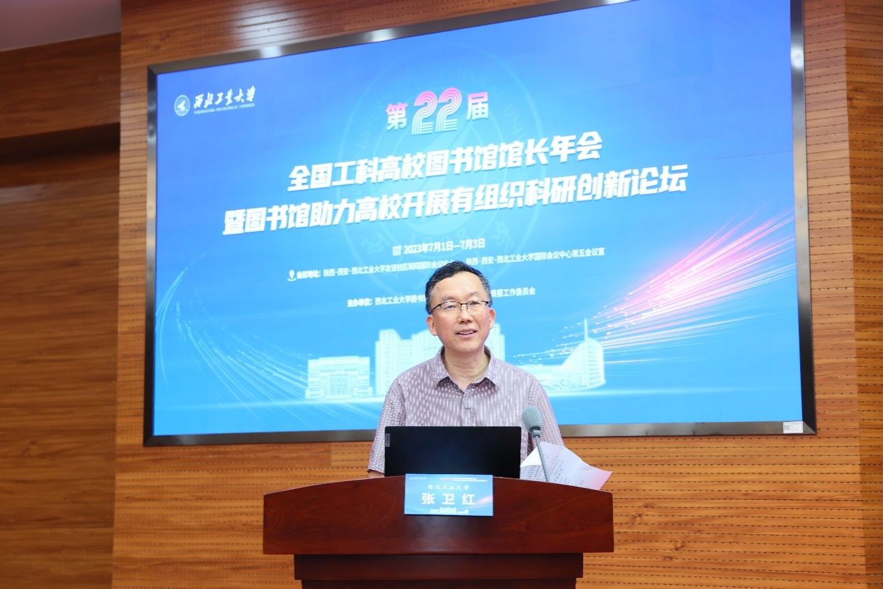 西工大新闻网7月5日电(图书馆 党委宣传部)7月3日, 第22届全国工科高校图书馆馆长年会暨图书馆助力高校开展有组织科研创新论坛在万象城娱乐awc线路举行。陕西省普通本科高等学校图书情报工作委员会副主任、西北农林科技大学图书馆馆长赵善廷,清华大学图书馆馆长金兼斌、上海交通大学图书馆馆长李新碗、华中科技大学图书馆馆长聂鸣、四川大学图书馆馆长兰利琼、哈尔滨工业大学图书馆馆长刘宏伟、北京理工大学图书馆馆长杨静、同济大学图书馆馆长陈欣、东南大学图书馆馆长李爱国、天津大学图书馆党委书记张超英、华南理工大学图书馆馆长解丽霞、大连理工大学图书馆馆长贾明、重庆大学图书馆馆长杨新涯、北京邮电大学图书馆馆长吴旭、南方科技大学图书馆馆长鄂鹤年、哈尔滨工程大学图书馆馆长许兆新,万象城娱乐awc线路图书馆馆长黄攀峰、党总支书记侯沛勇等全国一流大学工科高校图书馆馆长、书记,陕西省三十余所高校图书馆馆长、专家等共200余人参加了论坛。