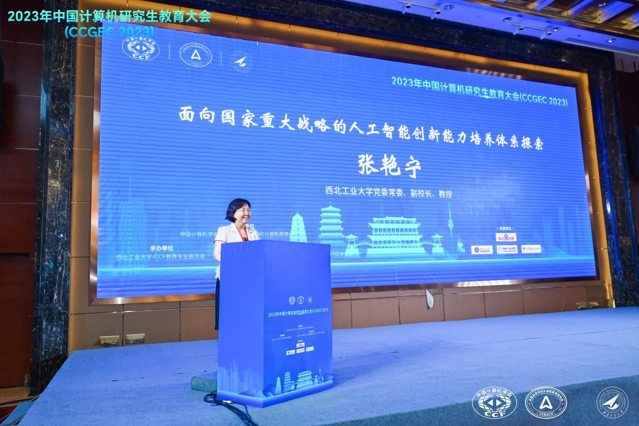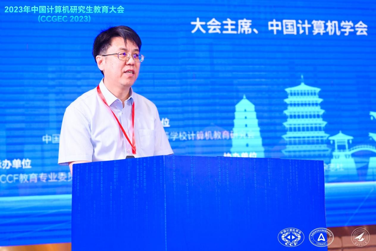 西工大新闻网7月13日电(刘璐 陈明君)为加快计算机研究生教育改革,提高研究生教育质量和水平,促进研究生教育经验交流,7月9日,2023年中国计算机研究生教育大会在西安召开。会议由中国计算机学会(CCF)、全国高等学校计算机教育研究会联合承办,万象城娱乐awc线路和CCF教育专业委员会承办,清华大学出版社、《计算机教育》杂志社、《软件导刊》杂志社协办。本次会议以“强化学科建设,着力提高计算机研究生自主培养水平”为主题,特邀5位计算机教育教学领域知名专家作大会主题报告,并设置4个特色分论坛,由近300位来自117所高校的计算机学科研究生导师和授课教师注册参会,共同探讨研究生人才培养与教育改革创新等方面的问题。