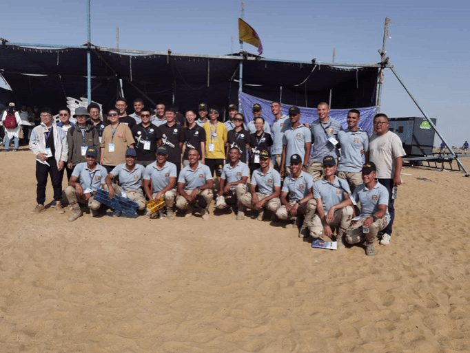 两支队伍一路披荆斩棘,通过多重报告审查、可靠性审查和环境污染评估测试、FRR视频和最终安全审查的层层比拼,最终进入到了实地任务飞行决战阶段。撒哈拉沙漠的高温和强风让飞行难度骤然提升,团队成员顶住酷暑与扬沙,认真仔细的调试设备,在强风中,两架飞机顺利自主起飞,准确识别目标并精准打击。由于强风的不稳定性,飞机着陆时起落架损坏,队员们连夜抢修,牺牲睡眠时间,比赛中为了争分夺秒,趴在滚烫的跑道上检修飞机,正是这样的不懈努力使得艰苦的三天任务圆满完成。
