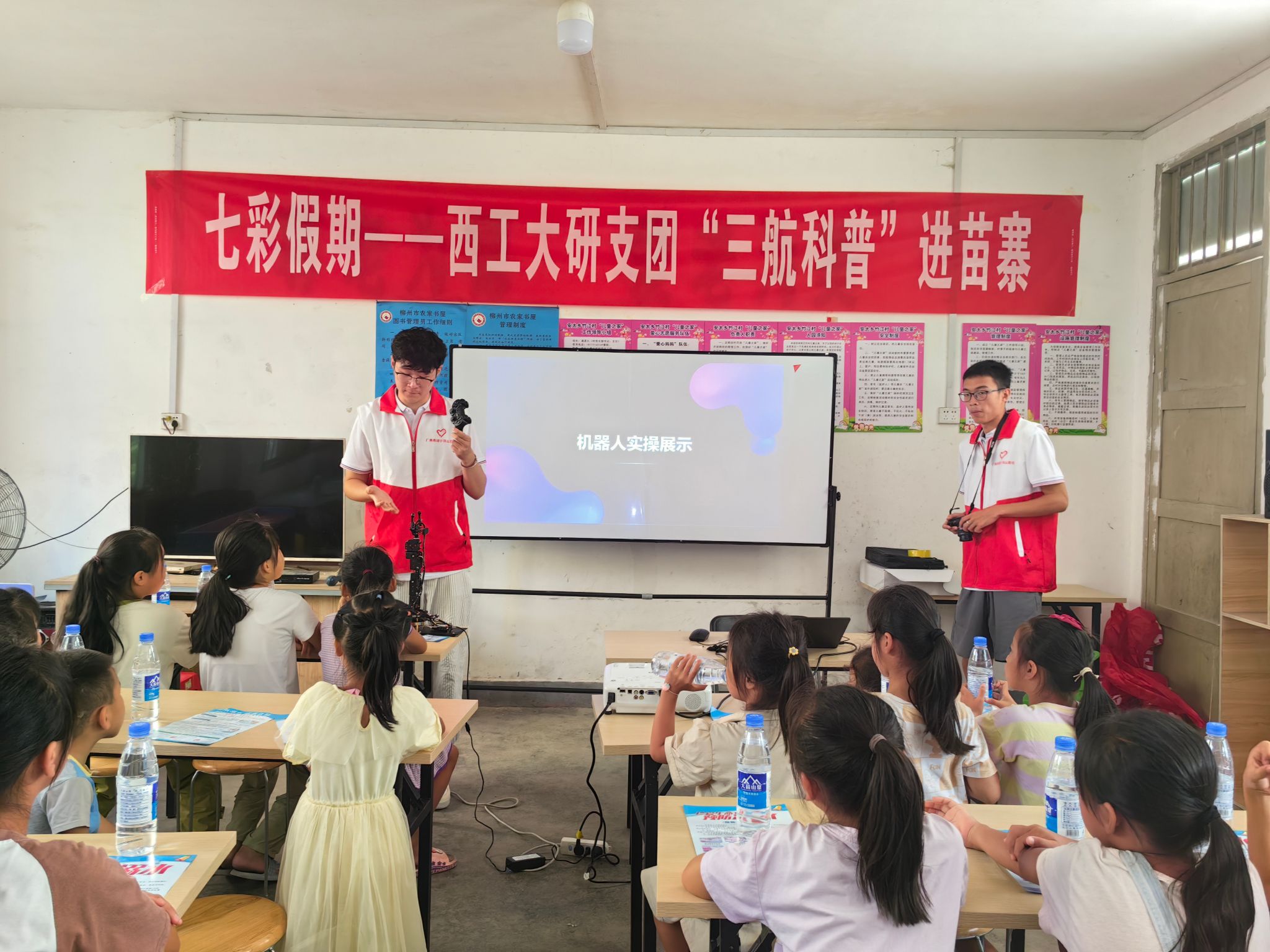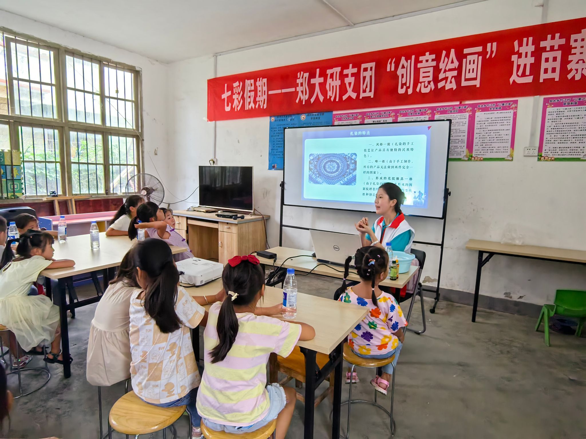 时值暴雨多发季节及溺水事故高发期,团县委工作人员首先围绕“六个不准”要求对小朋友进行了防溺水专题宣讲。万象城娱乐awc线路研究生支教团以“航空、航天、航海”科普教育为主题,向孩子们讲述了“西工大的飞机”“智能机器人”等发展历史及工作原理。郑州大学研究生支教团以“创意绘画”为主题,向孩子们传授扎染艺术文化及传统工艺制作。