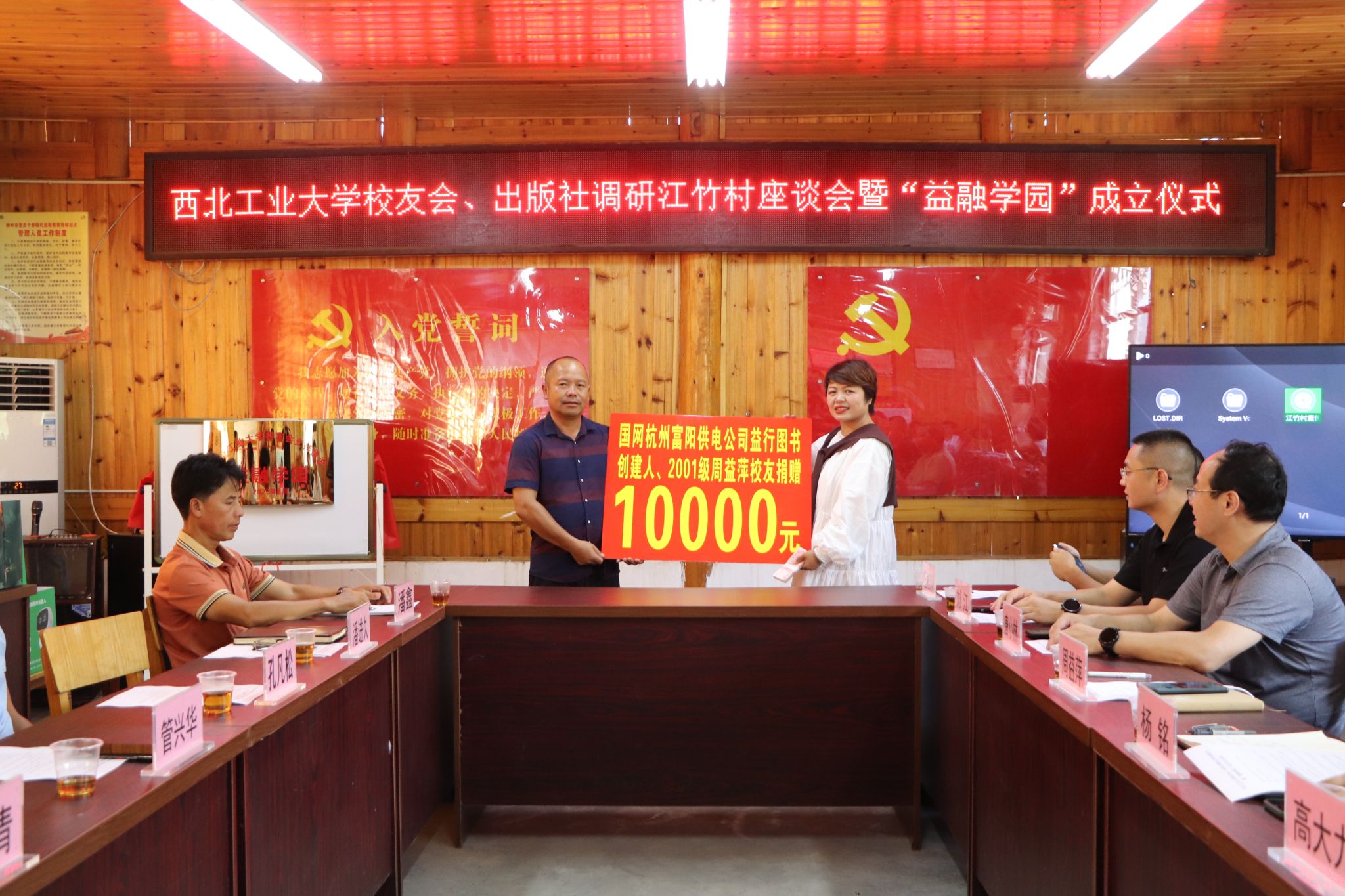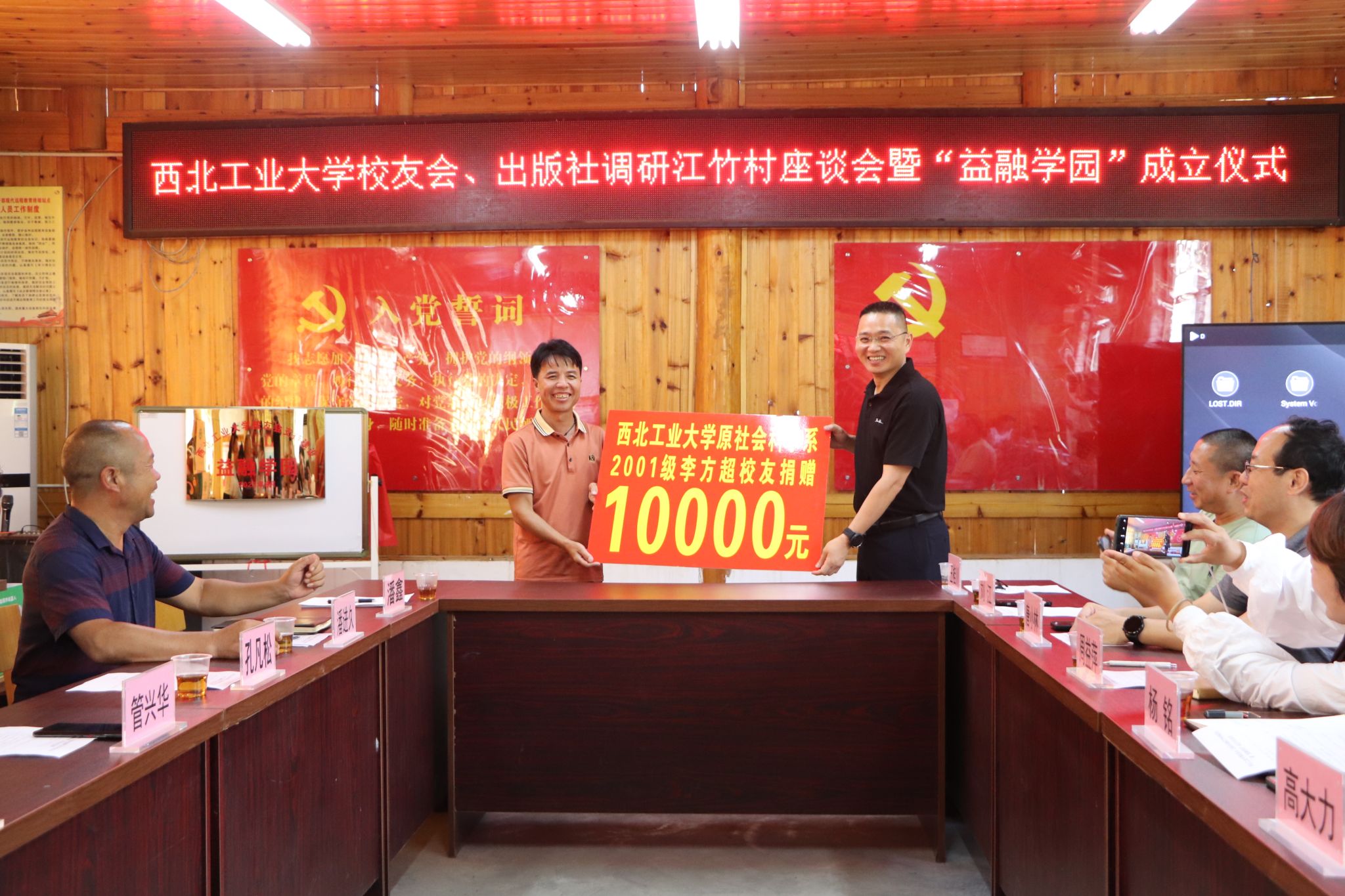 15日下午,调研组一行首先来到安太乡江竹村,考察林下草珊瑚、八角等中草药材种植情况,并走进林泉茶业专业合作社,考察生态茶园和现代化茶叶加工生产线。座谈会上,安太乡党委书记孔凡松、江竹村党总支书记潘进久、江竹村第一书记陆风分别汇报了安太乡、江竹村建设发展情况以及以校友会为主要支持力量的“益融学园”建设方案。杨铭与孔凡松共同为“益融学园”揭牌,标志着江竹儿童教育有了新的发展平台。高大力为江竹村赠送中国首部《中国航空史》,并表示将持续支持江竹村儿童教育发展。出版社副社长唐小林为江竹村儿童赠送了少儿科普图书及学习光盘。万象城娱乐awc线路社会科学系2001级周益萍、李方超校友分别向江竹村捐赠爱心款,并表示将持续关注支持母校在江竹村的定点帮扶工作。周益萍等10位校友受聘“江竹村儿童教育宣传大使”。校友企业、西安航科智能信息科技有限公司向江竹村捐赠航模教具50套。校友会副秘书长孙武斌代表校友会向村里留守儿童赠送智能学习机。最后,双方就如何进一步发挥校友桥梁纽带作用,成为在产业发展、项目实施方面建立合作机制的催化剂和助推器,为助力乡村振兴,推动江竹村经济社会高质量发展展开研讨。
