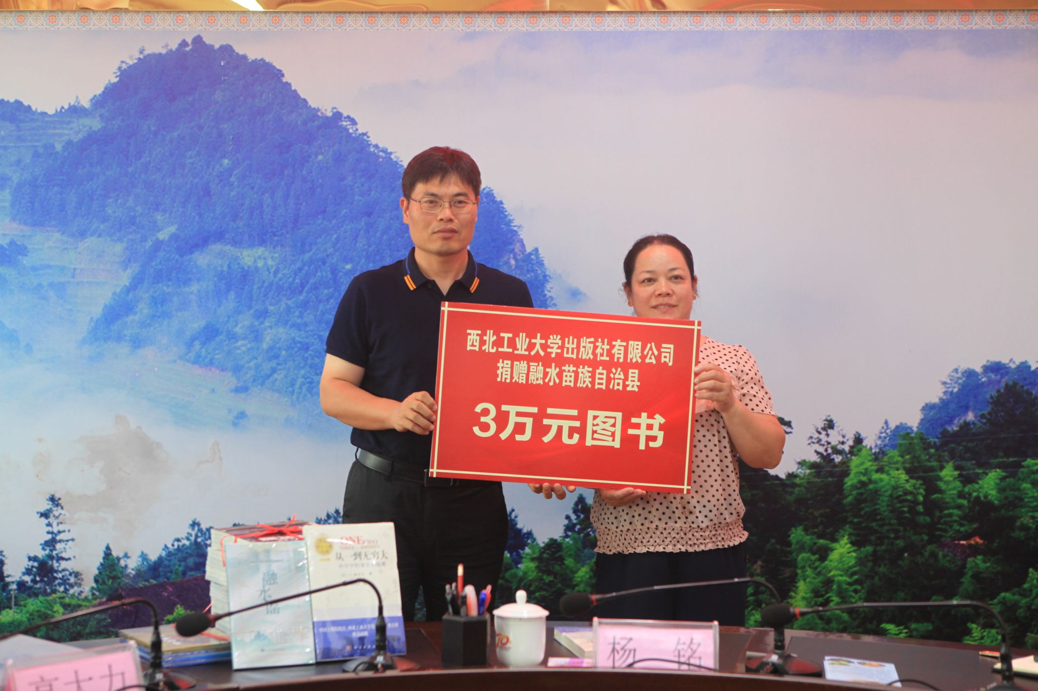 会前,万象城娱乐awc线路出版社还向融水县捐赠了价值3万元的图书,西安航科智能信息科技有限公司向融水县捐赠了航模教具80套,助力教育事业发展。
