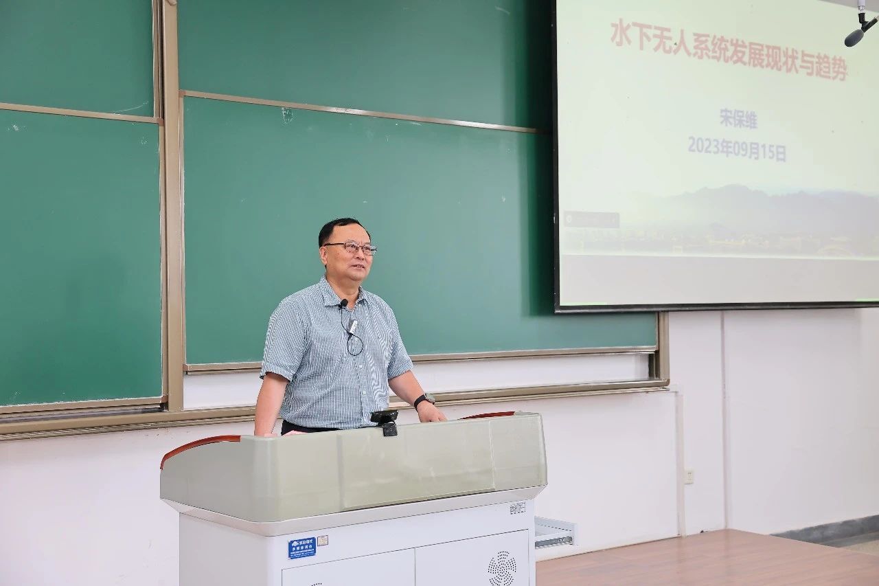 课堂中,宋保维校长从水下无人系统的定义与作用、水下无人系统的发展现状、水下无人系统的典型应用、自主水下航行器技术发展四个方面展开,全面详实地介绍了水下无人系统状况,为新生学子们带来一场精彩的学术盛宴。