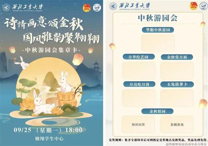 校团委举办“诗情画意颂金秋,国风雅韵聚翱翔”中秋游园会,联合各学院团委、学生社团营造浓厚中秋节日氛围,西工大学子在活动中共庆中秋佳节,欢度美好时光。
