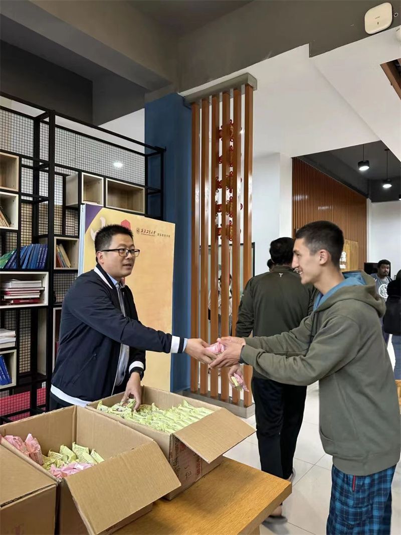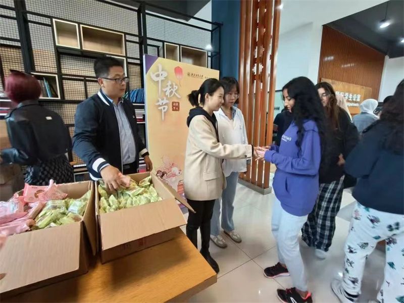 9月28日,学校以学院为单位,为全体在校学生每人发放2枚月饼,共计发放72000余枚,为同学们送去节日的祝福与关爱。