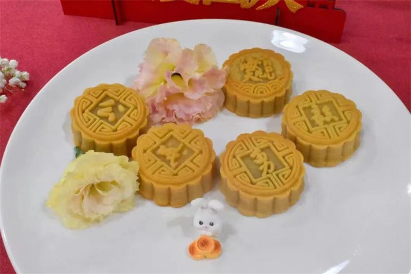 此次活动邀请海天苑学生餐厅白案主厨魏师傅,现场为“萌新”们讲解演示月饼制作方法。随后,大家按照讲解,揉面团、包馅、压模成型。待烘烤、晾凉后,一套“公诚勇毅”DIY款月饼就做好了。