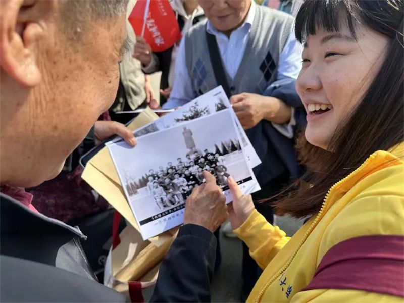 大家脸上都洋溢着灿烂的笑容,我们回家了!1965级5751班和5651班校友在何尊前合影。