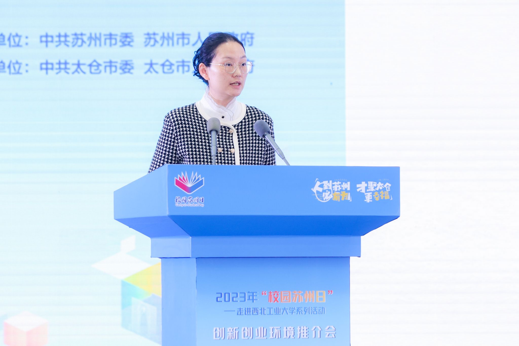 校友代表、姑苏创新创业领军人才刘文城及太仓定岗特选专业化青年人才陈丽丽分别从自身工作和生活经历出发,讲述了在苏州及太仓发展的心路历程。
