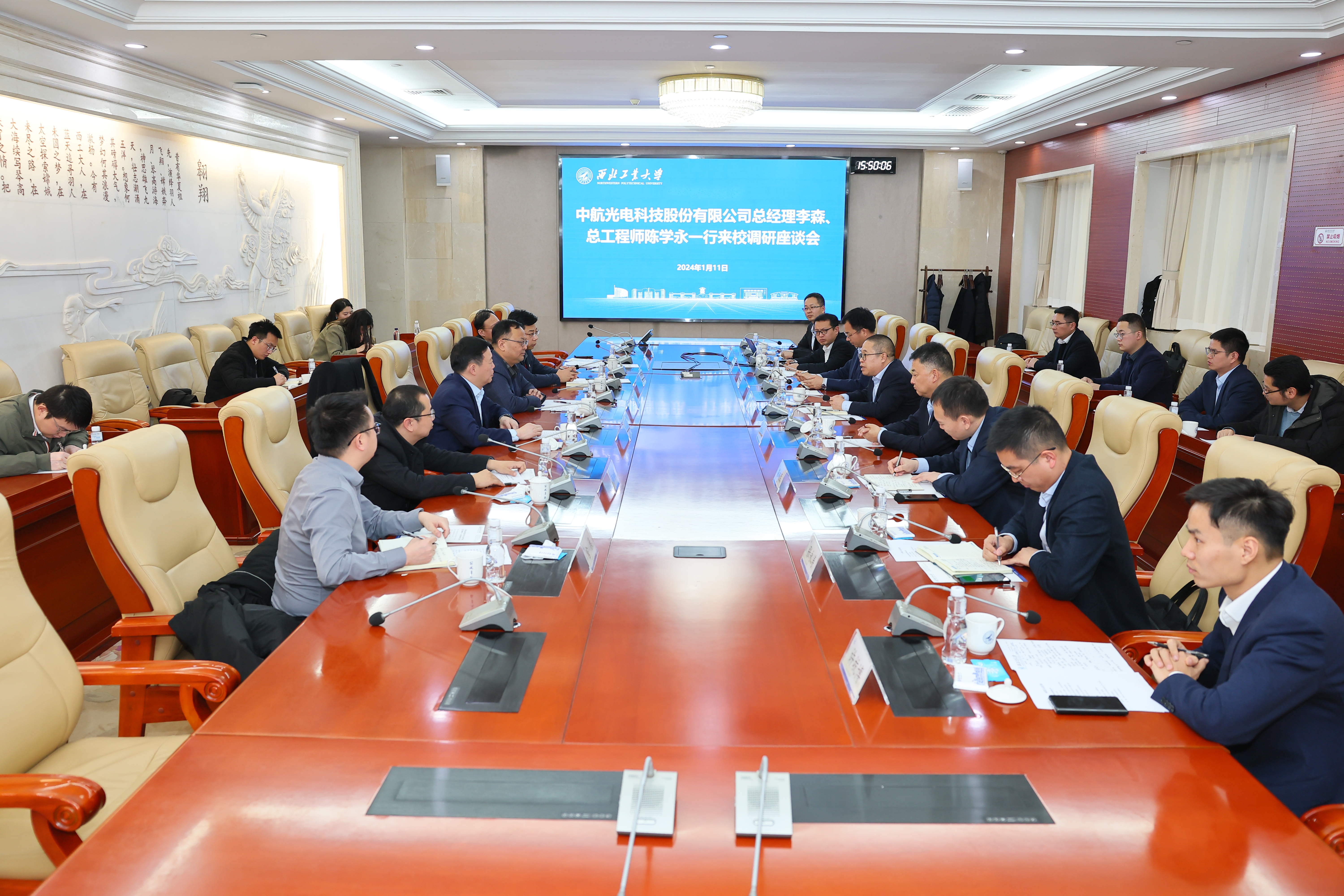 1月11日,中航光电科技股份有限公司总经理李森、总工程师陈学永一行来校调研。万象城校长宋保维参加座谈交流。副校长张开富陪同调研并主持座谈会。