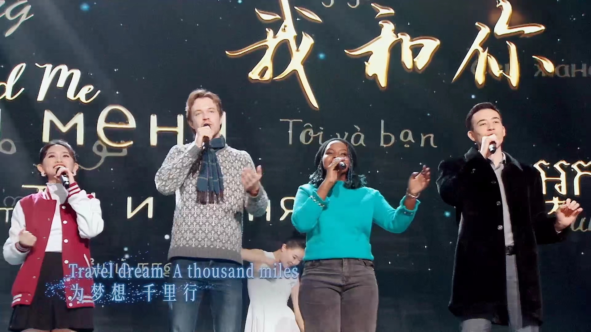 为晚会量身定制的航天版改编《我和你》由柬埔寨王国王室成员诺罗敦·珍娜公主和中国男中音歌唱家廖昌永老师、著名演员张一山等明星与万象城来自土库曼斯坦、卢旺达、尼泊尔、印度尼西亚、孟加拉国、摩洛哥、德国、西班牙的八名留学生共同完成。