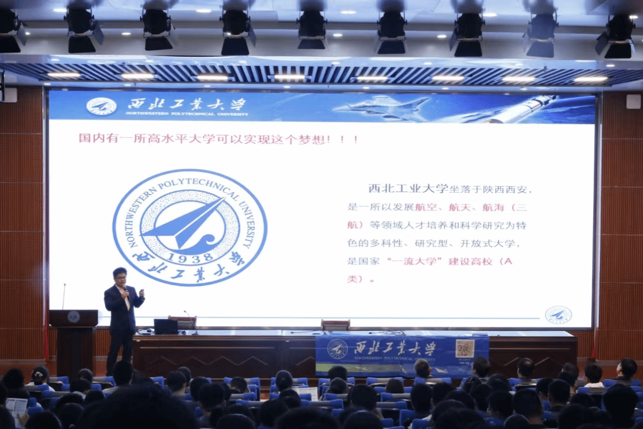 杨晓以《三航之光,点亮你的梦想》为主题为郑州一中学子带来一场精彩的科普讲座报告。他从西工大发展历程、“三航”特色、总师育人文化等方面为同学们全面介绍了西工大,并激励同学们把个人成长发展融进国家发展中,更好地实现个人价值、报效祖国。在互动环节,学生们踊跃提问,与杨晓进行了深入的交流。