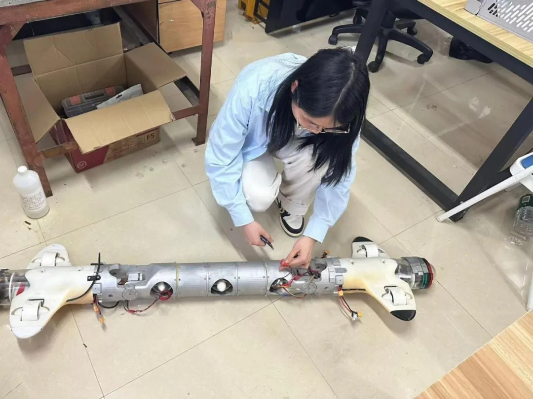 在比赛准备过程中,她学到了许多关于水动力学的知识,了解了水下环境对设备运行的影响。通过精确的计算和细致的调试,他们优化了航行器的稳定性和机动性。通过此次比赛,曹婉颖更加深刻地体会到了团队合作的重要性。每位团队成员都有自己的专长,只有通过高效的沟通与协作,才能克服技术上的挑战。她积极协调团队中的各类意见和想法,合理分配团队资源,努力确保每一步决策都能得到团队成员的广泛支持,并将其执行到位。在她的带领下,团队克服重重困难,不断推进项目发展完善,并最终取得了全国二等奖的好成绩。