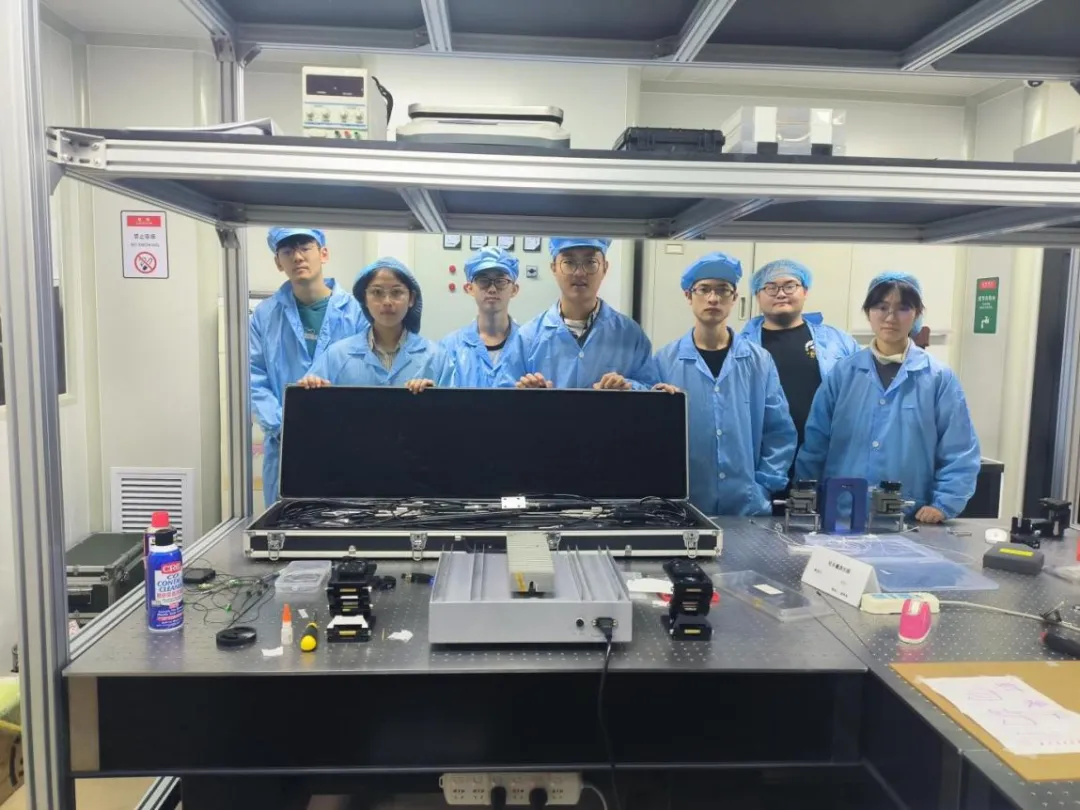 团队在实验室调试设备(第一排左一)
