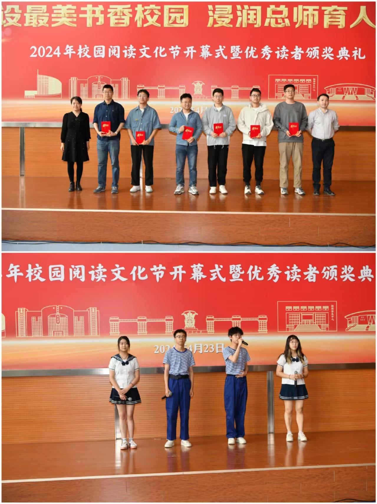 4月23日,2024年校园阅读文化节开幕式暨优秀读者颁奖典礼在长安校区图书馆报告厅举行。今年的主题是“建设最美书香校园,浸润总师育人文化”。