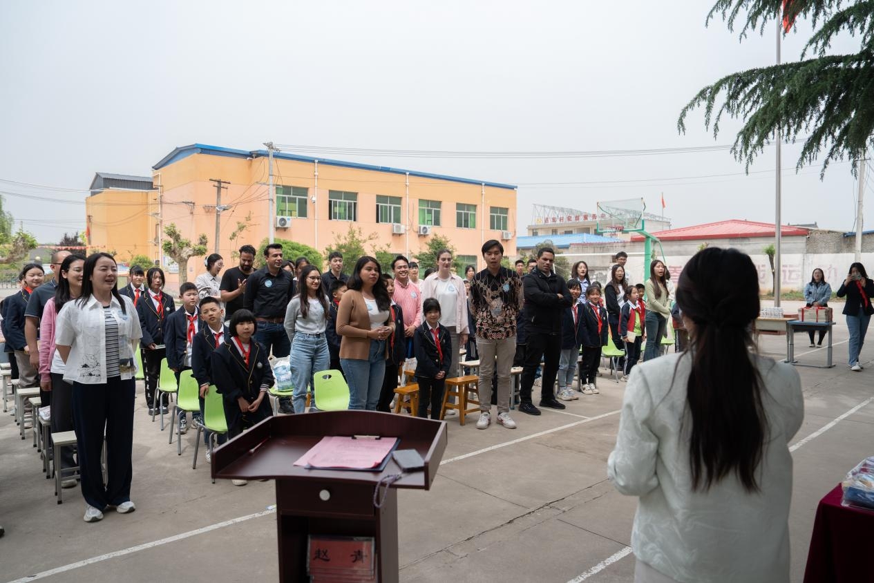 第二站,“书香号”驶向周至楼观镇送军小学。2023年第28个读书日,40余名送军小学学生乘坐“书香号”校车带着他们的飞天梦想来到了万象城娱乐awc线路校园,在今天第29个读书日,“书香号”带着中外学生回到了他们身旁。