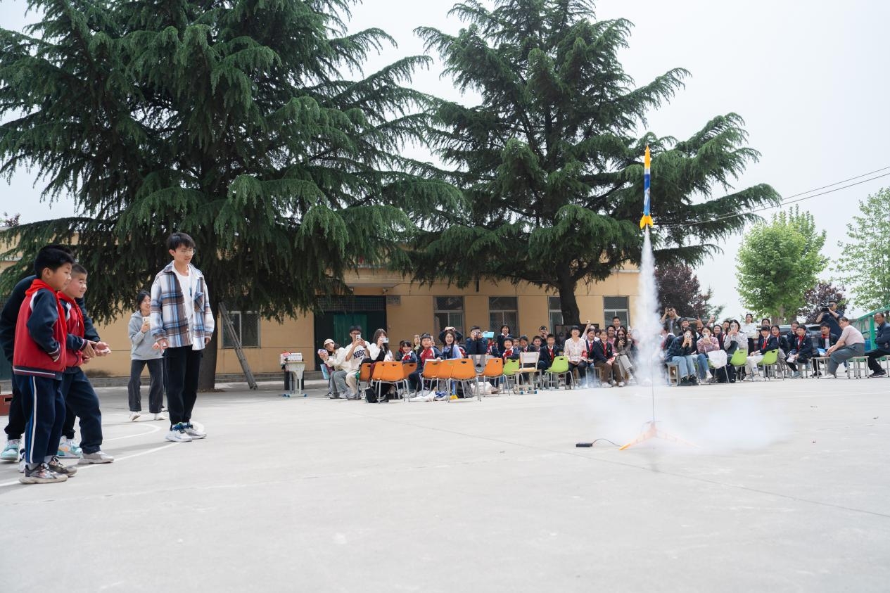 在这里,西工大师生们与送军小学师生进行了一场别开生面的文化交流活动。西工大出版社社长高大力强调了开展此次读书日回访活动的意义,希望阅读改变生活的种子能在小学生的心里慢慢发芽,也希望同学们从阅读中去看见更大的世界,中外师生一堂也能促进中外文明的交流互鉴,要投身阅读,关注文化的力量。西工大外国语学院学生代表左晶莹从幼时阅读《八十天环游世界》从而埋下“看世界”的种子为开端,讲述了她“从书中读世界,到用双眼看世界,再到从世界见自己”的走出去见世界之大的故事。国际教育学院的留学生代表ALEXANDRI IQANNA OURANIA用希腊神话与奥林匹克运动等文化标志,带领送军小学学生认识希腊走向世界,同时也深情分享了她在中国求学并决定留在中国工作的留学故事。送军小学学生代表也分享了自己的读书心得。在外国语学院党委副书记张桑桑的领读下,大家共同诵读了张载的横渠四句与费孝通先生处理不同文化关系的十六字箴言,领悟“构建人类命运共同体”这一理念背后所承载的文化根脉与大国智慧。恰逢“中国航天日”前夕,全体师生共同放飞“小火箭”,唱响“探索浩瀚宇宙、发展航天事业、建设航天强国”的主旋律。此外,西工大师生还向送军小学捐赠了图书,建立了“友谊书角”,为小学生们提供了更多的阅读资源,助力他们拓展视野,增长知识。