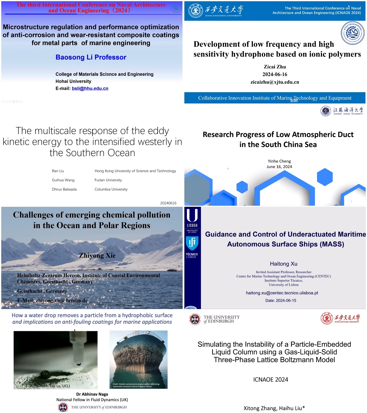 第三届船舶与海洋工程国际会议(ICNAOE 2024)将来自多个国家、相关专业背景的专家学者们聚集在了一起,带来了28个代表国际前沿水平的精彩学术报告。大家共同聚焦船舶与海洋工程领域热点问题,不仅展现了学科领域国际领先的科研水平以及最前沿的的研究成果,与会者也通过此次会议互相沟通,扩宽视野,共商海洋科技发展新格局。
