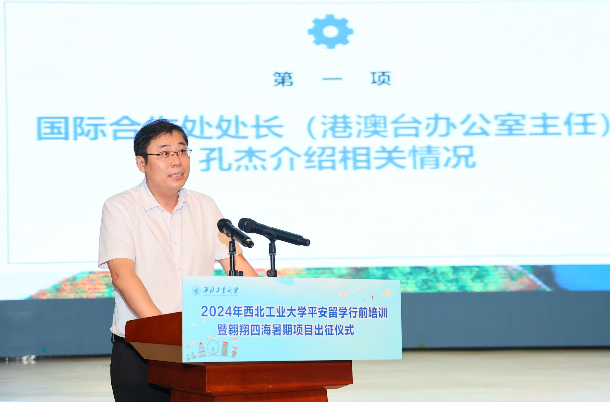 国际合作处处长、港澳台办公室主任孔杰介绍翱翔四海项目相关情况。今年以来,学校全力推进“翱翔四海”短期项目,119个团队,2500余名学生将在暑期前往38个国家(地区)开展“全球治理勇担当”“‘一带一路’绘未来”“科技创新攀高峰”“强基拔尖创卓越”“学术前沿拓视野”“国际竞赛展风采”“人文交流促相通”七大主题学习实践。